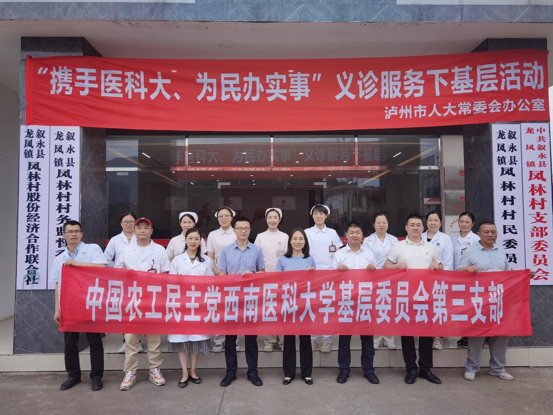 为庆祝医院建院40周年,弘扬中医药文化,守护百姓身心健康,农工民主党西南医科大学基层委员会第三支部联合市人大常委会机关党委前往叙永县龙凤镇凤林村开展义诊活动。