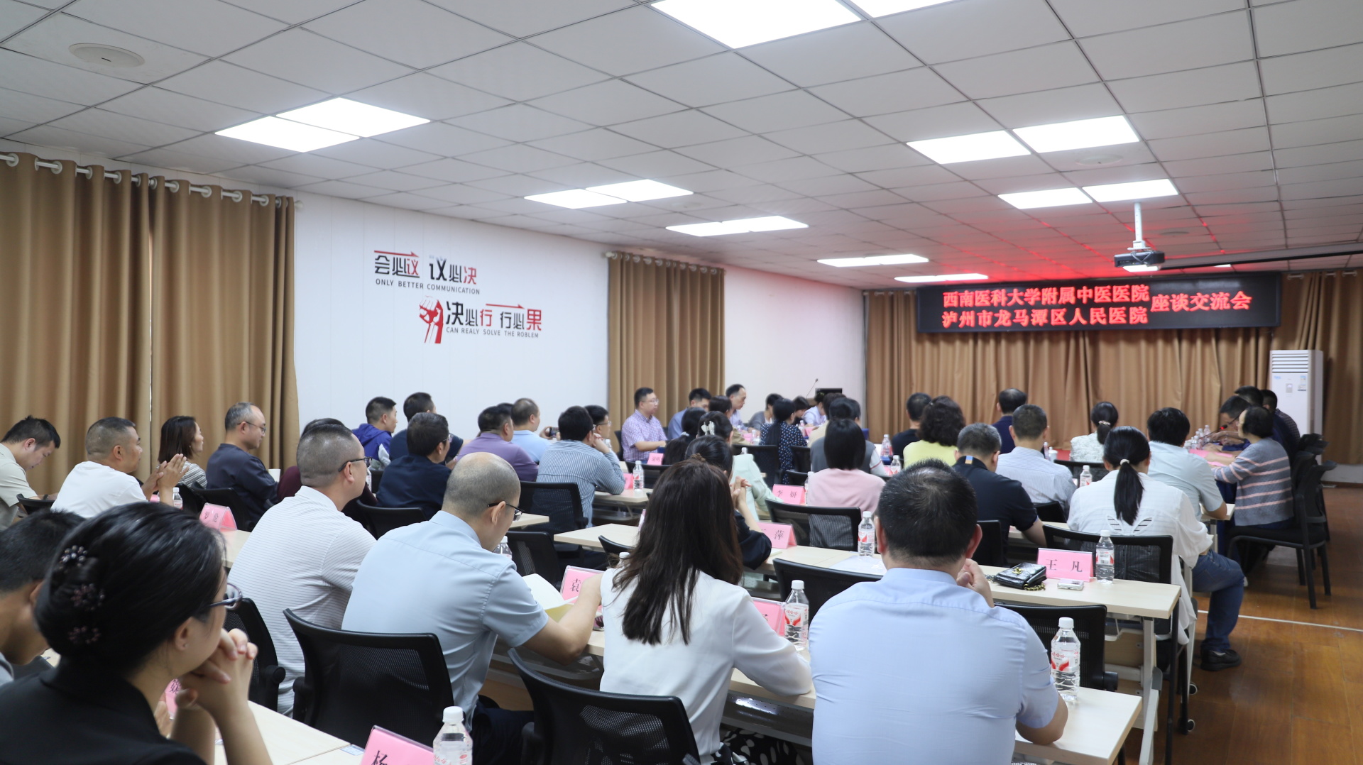 10月15日,我院院长汪国友,副院长董丽、张磊带领相关职能部门及临床科室负责人到龙马潭区人民医院交流。龙马潭区人民医院党委书记侯云清,党委副书记、院长刘宗超等班子成员及相关职能部门、临床科室负责人等参加了座谈会。