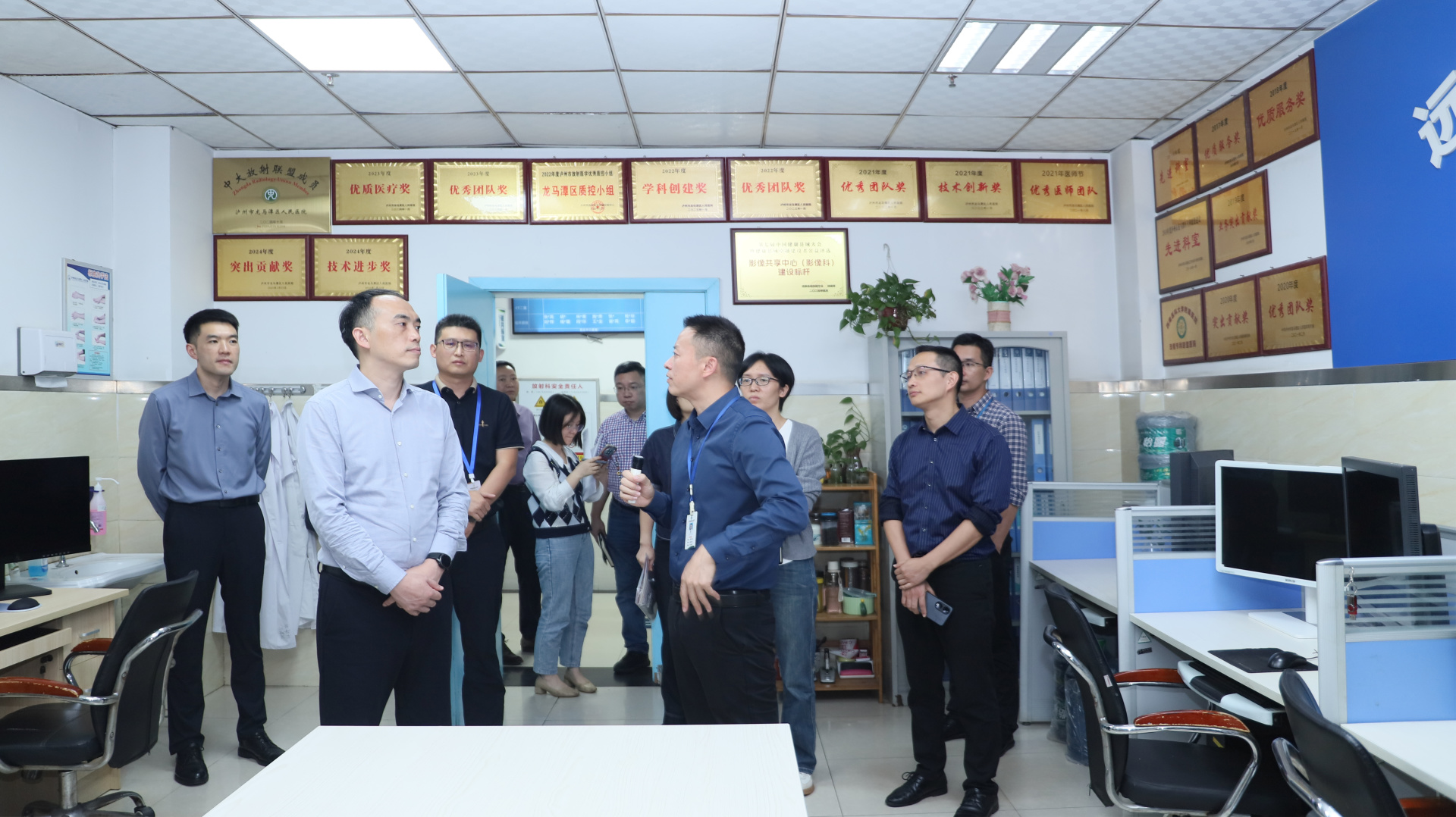 会前,汪国友一行参观了龙马潭区人民医院的门急诊区域、住院大楼及远程医疗服务系统。