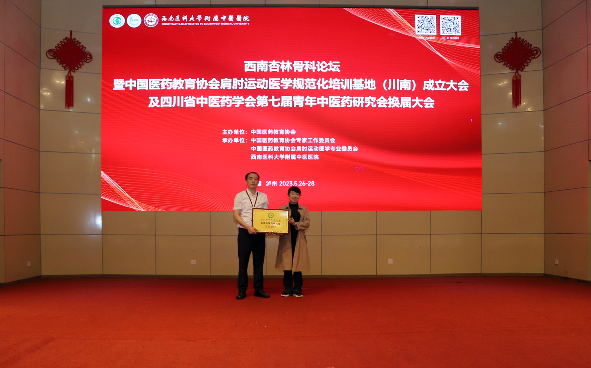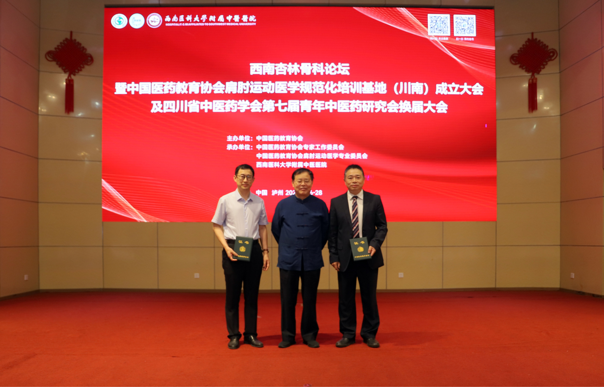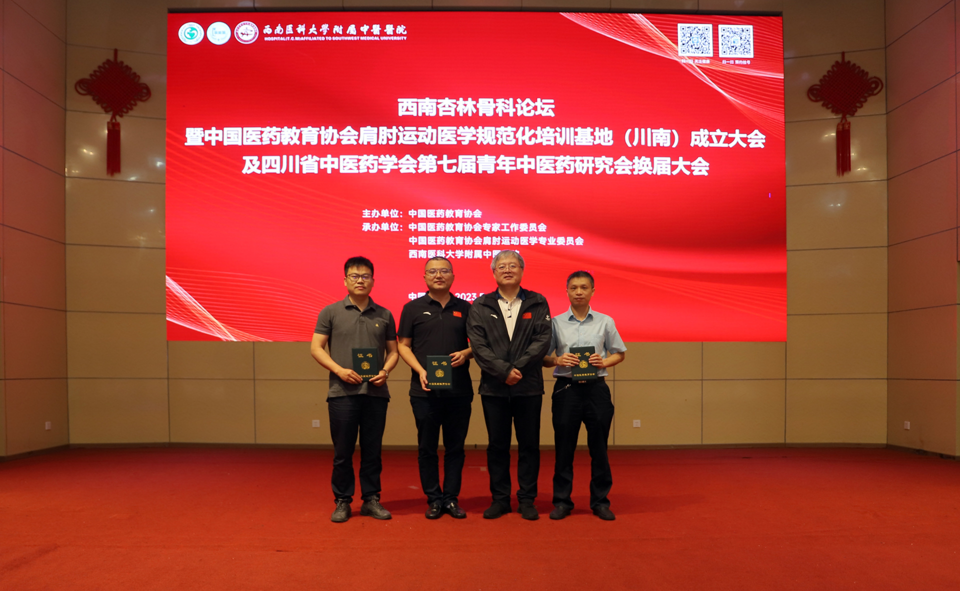2023年5月26-27日,西南杏林骨科论坛暨中国医药教育协会肩肘运动医学规范化培训基地(川南)成立大会及四川省中医药学会第七届青年中医药研究会换届大会及国家级继续教育项目“脊柱退变性疾病的规范化诊疗”会议在我院召开,中国医药教育协会副会长贾万年、杨新波、崔国庆,四川省中医药学会秘书长肖英,我院副院长汪国友,中国医药教育协会肩肘运动医学专委会、四川省中医药学会委员及来自国内外骨科和运动医学相关专业医护人员等300余人参加了开幕式。