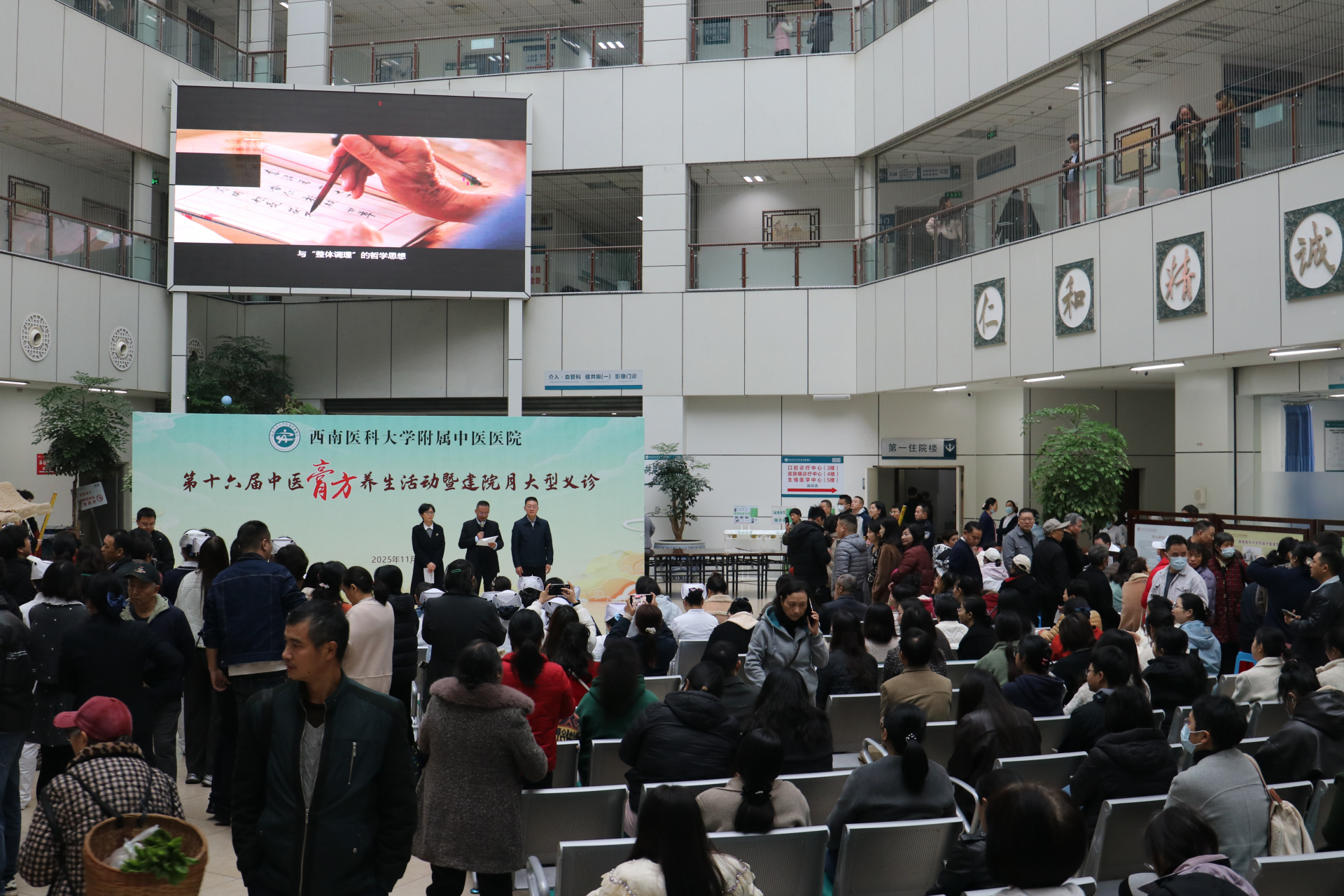 代天祥致辞。他指出,中医膏方是“治未病”理念与整体调理思想的生动载体,兼具养生与防病治病功效。医院研发的膏方、养生药膳等“新中式”养生产品,深受市民朋友的喜爱和认可。他表示,医院在建院42周年之际举办第十六届中医膏方养生活动暨建院月大型义诊,既是对千年中医药文化的致敬传承,更是践行健康中国战略、服务群众健康需求的责任担当。医院将以此次活动为契机,进一步充分发挥中医药治未病的特色优势,进一步推广中医药文化健康知识,让中医药在防病治病和养生保健等方面更好地为人民群众服务,助推泸州国家区域医药健康中心和中医药强市建设,为中医药事业传承创新发展贡献积极力量。