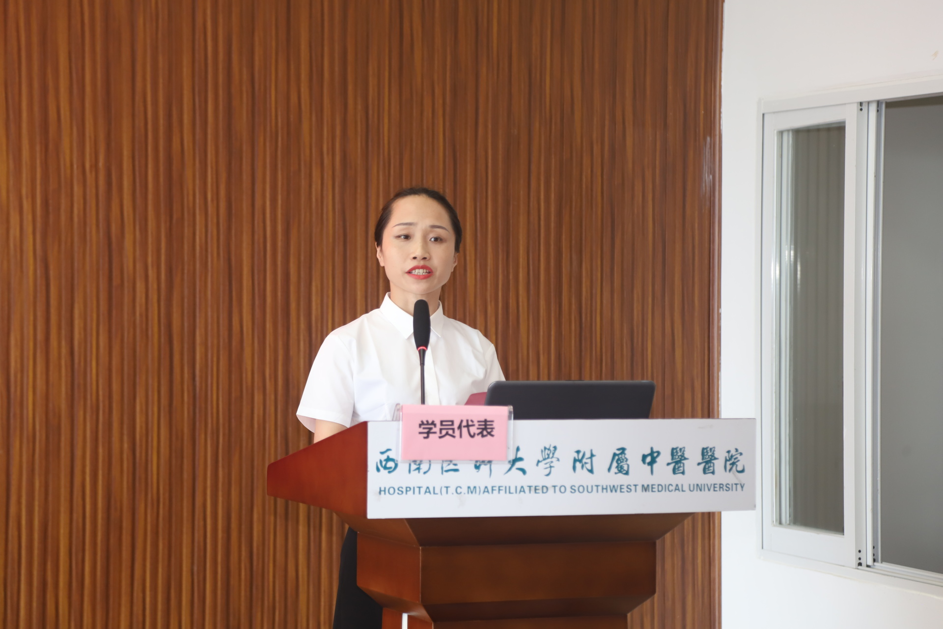 典礼上,学员们以《走进中医,传承护理》为题进行了朗诵表演;学员代表彭文静、优秀临床带教科室代表李同莲先后发言。