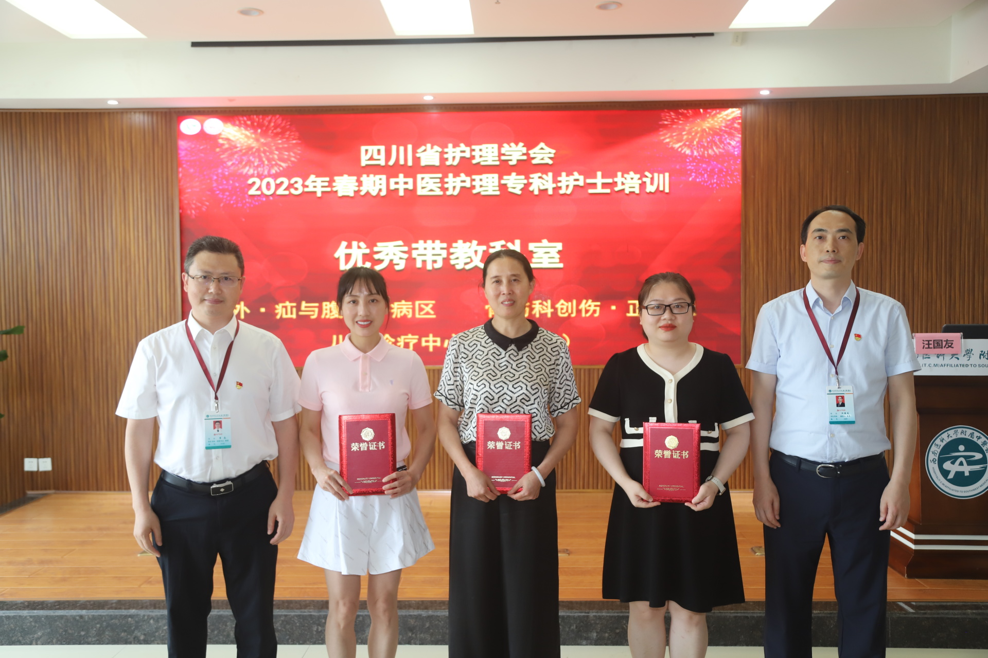 2023年5月29日,我院举行四川省护理学会2023年春期中医护理专科护士培训班结业典礼,医院党委书记李志、副院长汪国友,相关职能部门负责人、基地科室护士长及34名中医护理专科护士学员等参加了结业典礼,典礼由汪国友主持。