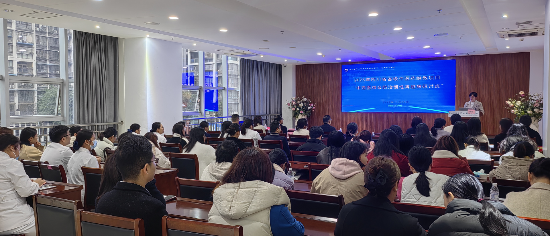 11月22日,我院举办2025年四川省中医药继教项目“中西医结合防治慢性肾脏病培训班”,我院副院长董丽,肾病科刘建教授、四川大学华西医院余少斌教授、四川省人民医院王蔚教授等9名业内专家,以及省内各医疗机构肾病、血透及相关专业100余名医护人员参加了开幕式。开幕式由肾病科主任张琼主持。