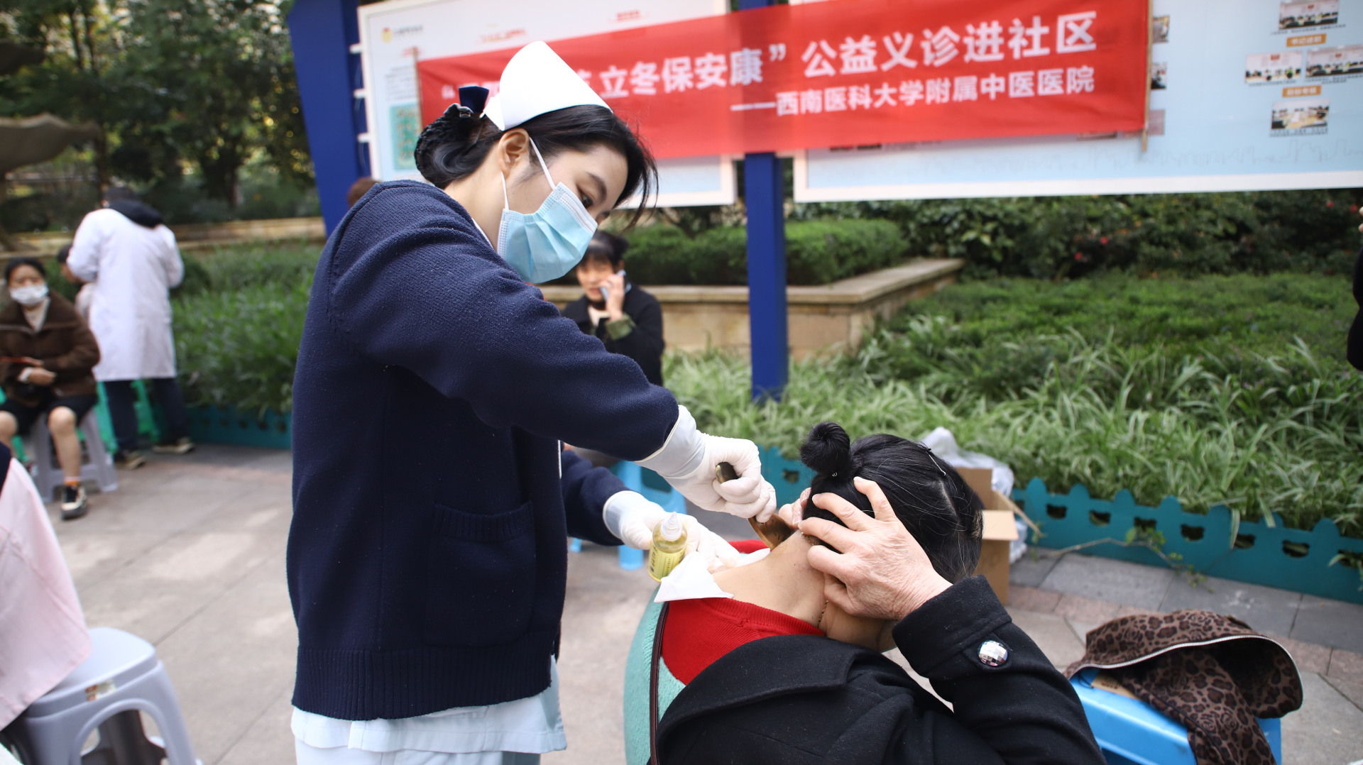 活动现场,医务人员向现场群众提供了中医药特色诊疗服务,专家现场辨证开方,给予健康指导。义诊现场还设置了中医特色技术体验专区,为现场群众免费提供艾灸、刮痧、火龙罐等中医特色技术体验服务。