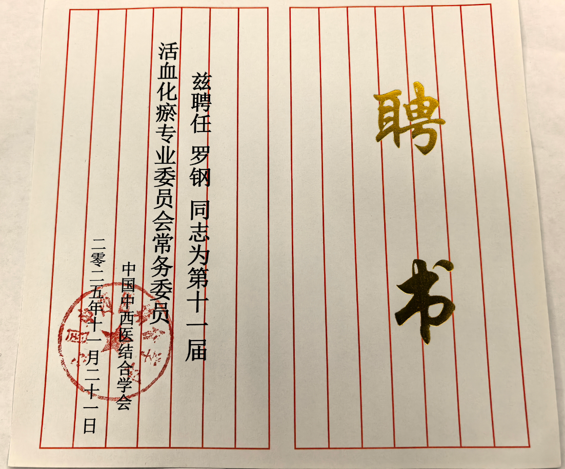 11月21-23日,中国中西医结合学会活血化瘀专业委员会2025学术年会暨换届选举会议在河南省郑州召开,我院心血管内科罗钢教授当选为专委会常务委员及教育工作委员会成员。