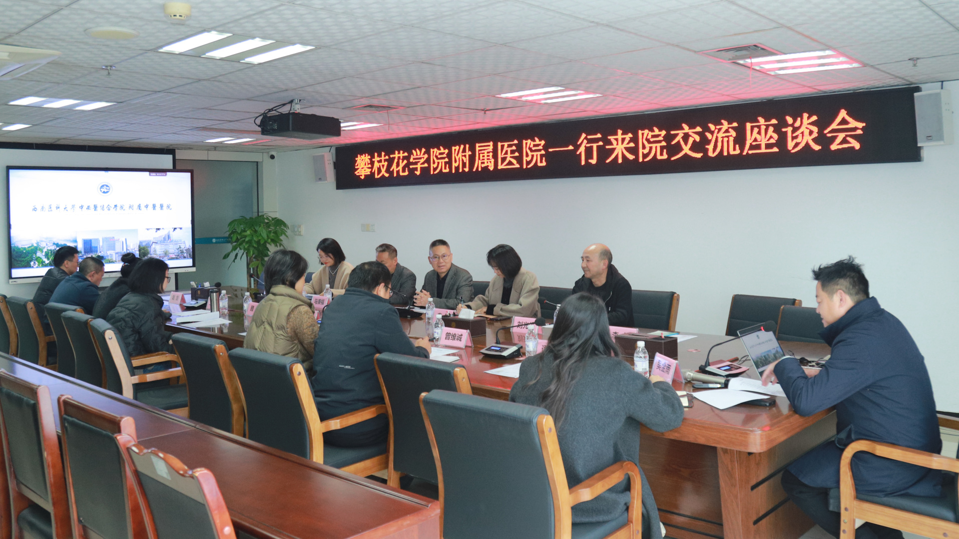 11月27日,攀枝花学院附属医院副院长包家新一行来院交流,我院副院长韩云炜及相关职能部门人员等参加了座谈会。