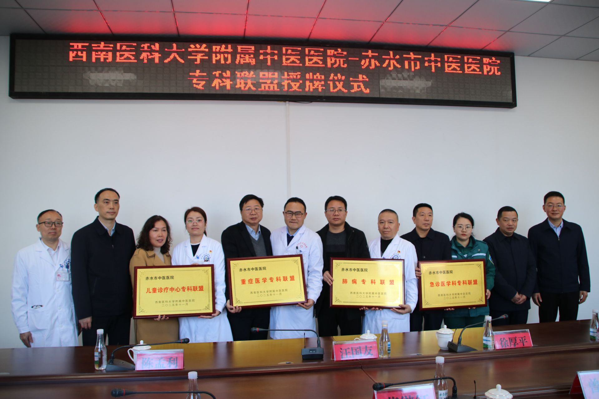 随后,我院泌尿外科、胸心外科等科室先后向赤水市中医医院授予专科联盟牌匾。