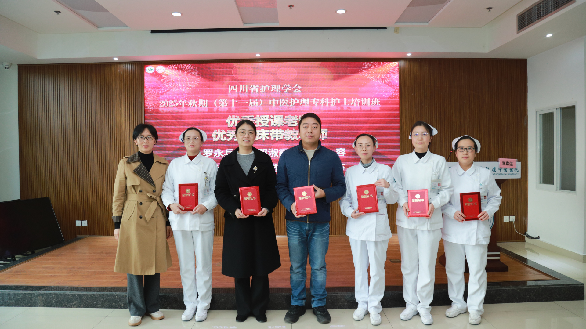 会上,与会领导为师生颁发了“最佳理论考核奖”“最佳操作能手”“最佳个案汇报风采”“优秀班干部”“优秀学员”“优秀授课教师”“优秀临床带教老师”“优秀带教科室”等荣誉证书,并为全体学员颁发了结业证书。