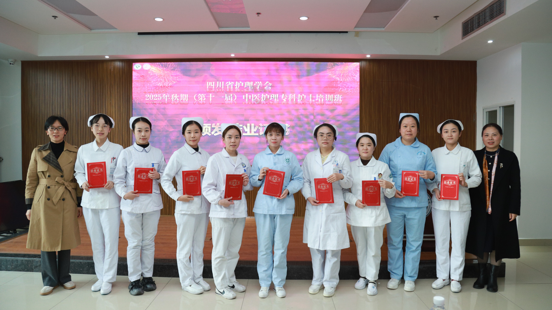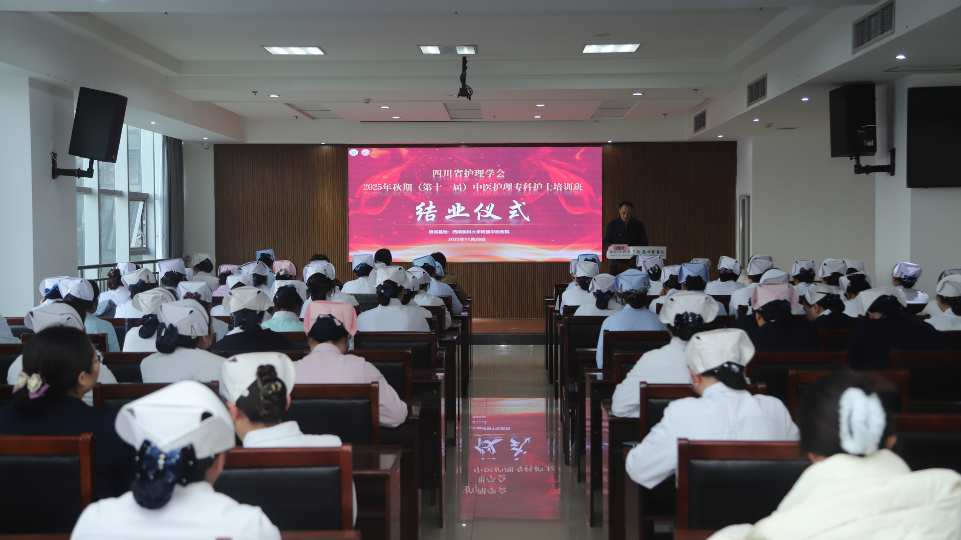 11月28日,我院举行四川省护理学会2025年秋期(第十一届)中医护理专科护士培训班结业仪式。医院院长汪国友,副院长董丽,基地负责人、相关职能部门负责人、基地科室护士长及带教老师、本届全体学员参加仪式。仪式由护理部部长李素莲主持。