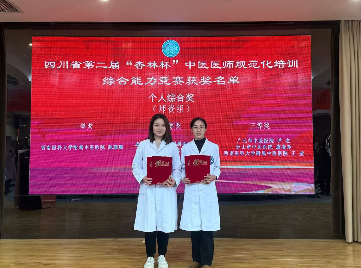 经过激烈角逐,我院带教老师针灸·推拿·康复科王莹、脾胃·风湿免疫病科陈珊珊、骨伤科创伤·正骨组张小敏,规培学员孙光祥、周小容、徐晓琴组成的西南医科大学附属中医医院代表队荣获团体一等奖。陈珊珊荣获个人综合成绩一等奖、门诊带教赛道第一名,王莹荣获个人综合成绩三等奖、中医经典理论第一名。