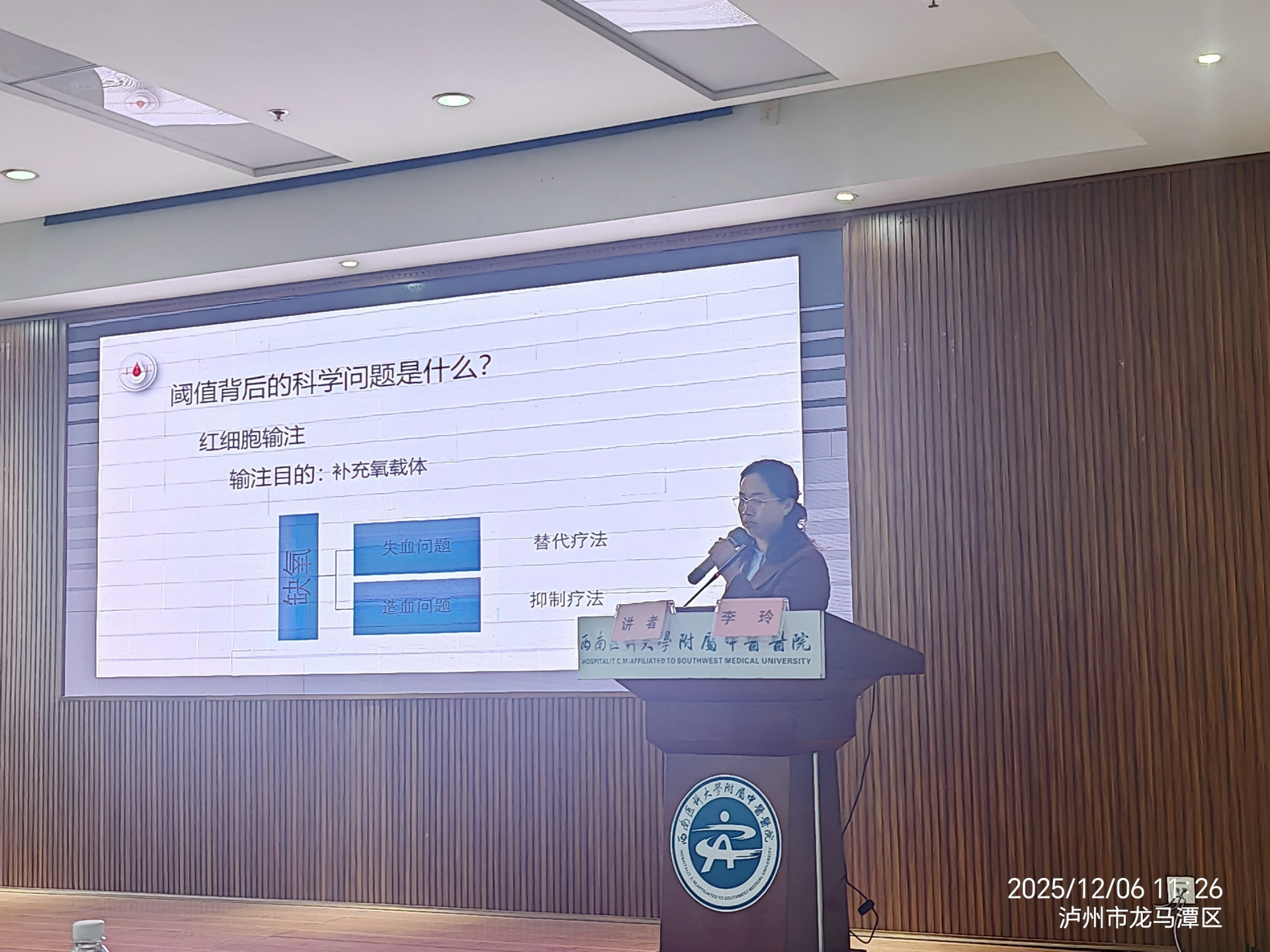 成都市第三人民医院李玲作《红细胞输注适应症和相关科学问题》
