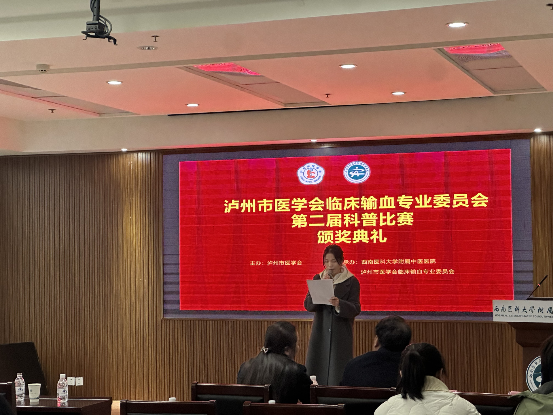 12月6日,2025年泸州市医学会临床输血专委会第二届科普比赛颁奖仪式举行。我院严小平制作的短视频《输血能包治百病?》荣获一等奖,王基策制作的短视频《O型血是“万能充电宝”吗?》荣获优秀奖。