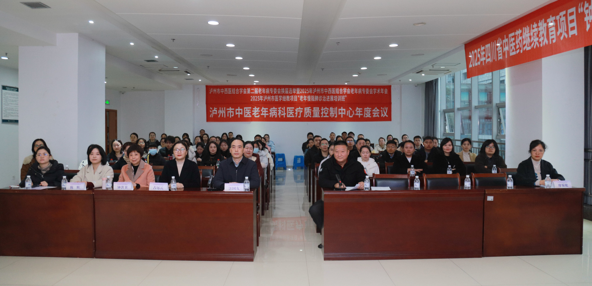 12月13日,我院举行了泸州市中西医结合学会第二届老年病专委会换届选举暨2025年泸州市中西医结合学会老年病专委会学术年会、2025年泸州市中医老年病科医疗质量控制中心年度质控会议、2025年泸州市中西医结合学会市级医学继续教育项目“老年慢阻肺诊治进展培训班”、2025年四川省中医药继续教育项目“钟洪卫教授学术思想与临床经验传承培训班”。泸州市中西医结合学会会长、我院院长汪国友,授课专家及老年病专委会全体委员等参加了会议。