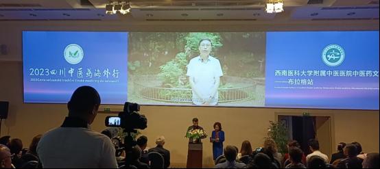 捷克中医药中心创始人及执行董事罗曼致辞,他表示该中心与我院有着长期友好合作关系,中医推广在捷克有广阔的前景,期待双方进一步深化交流合作。
