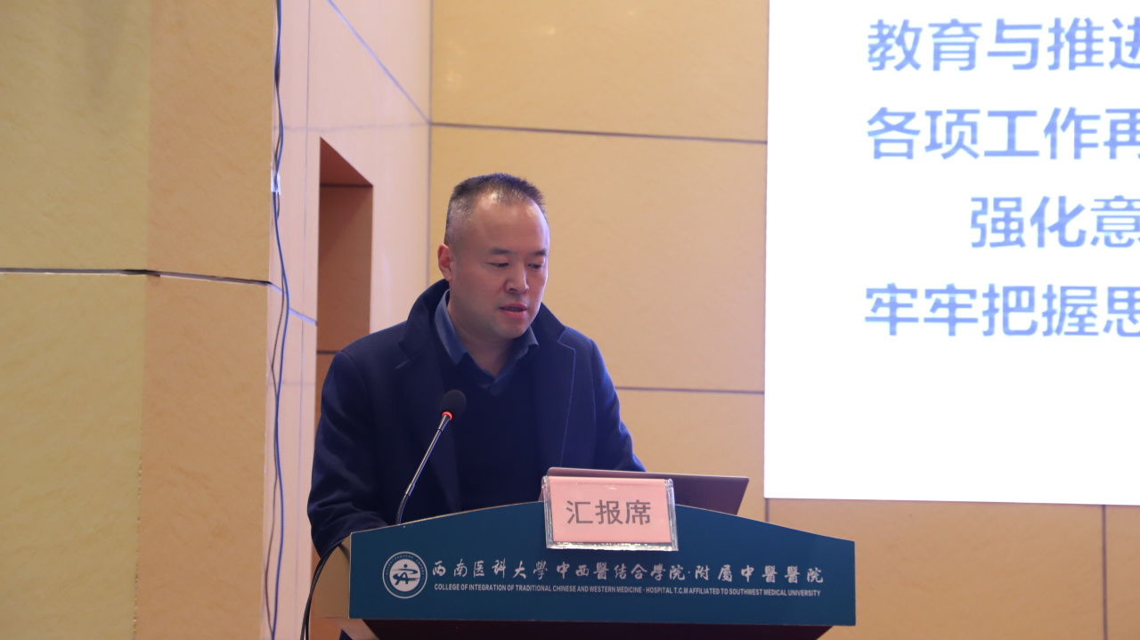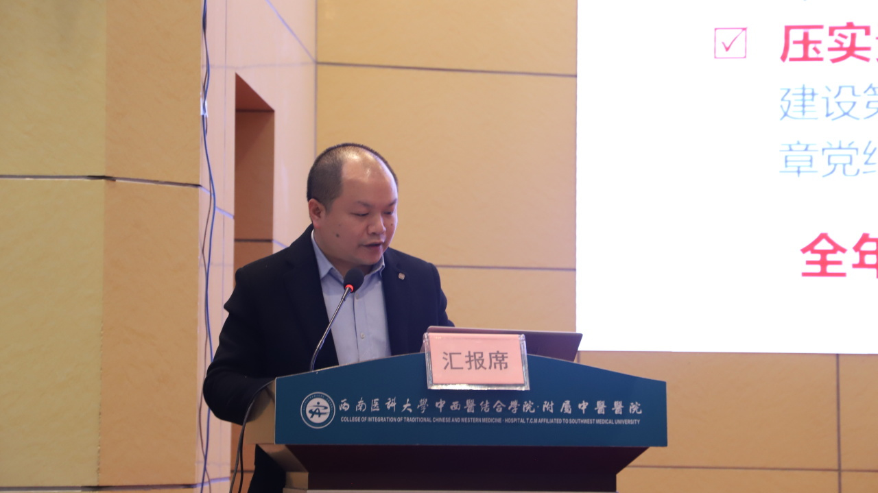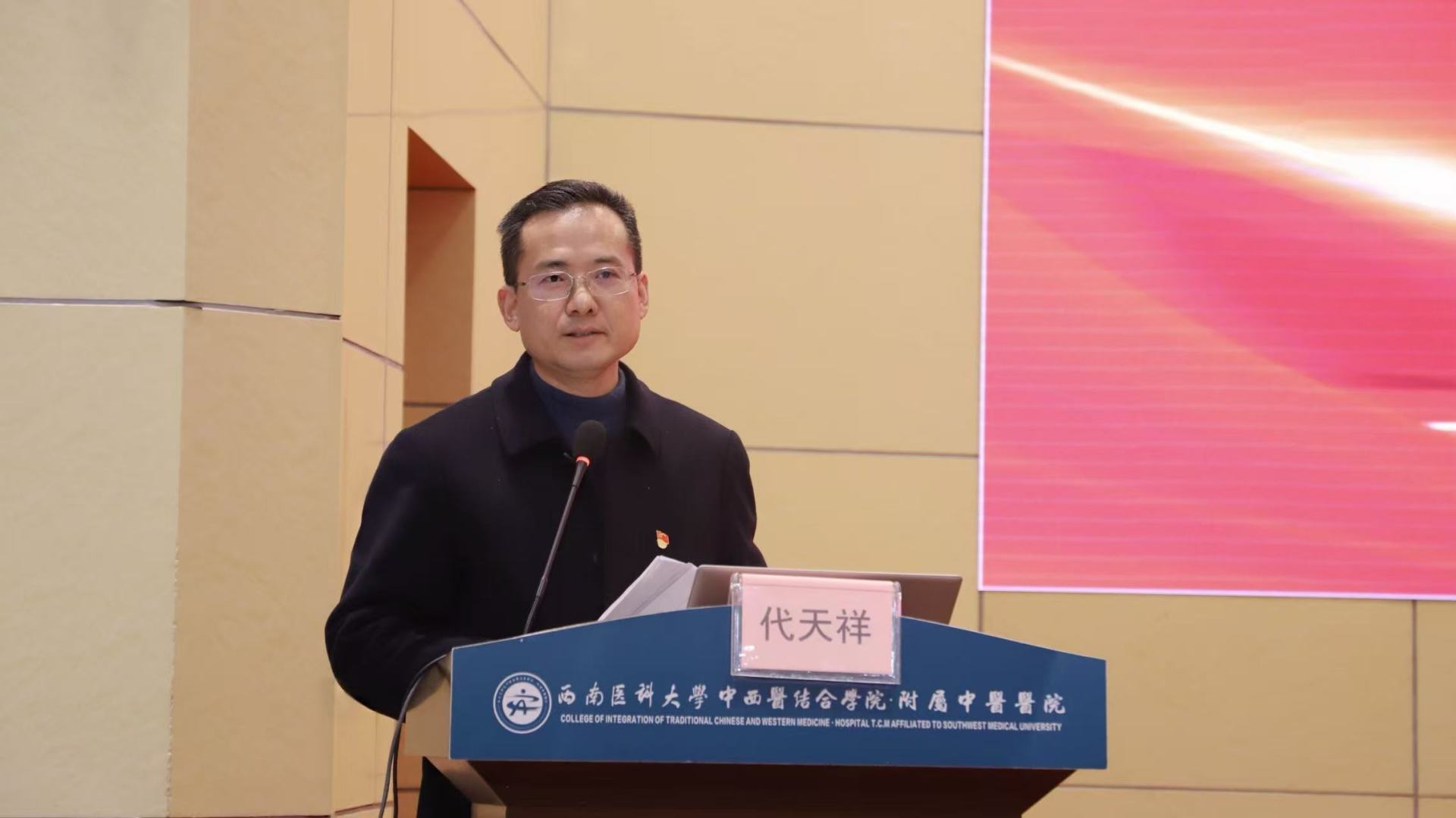 代天祥讲话。他指出,在全院干部职工的共同努力下,2025年医院在医疗、教学、科研等多个领域取得了显著成绩。面对医疗卫生健康事业发展的新形势、新挑战,针对2026年的工作和“十五五”规划,他对全院干部职工提出三点要求:一是党建引领,推动党建业务双融双促;二是担当作为,助力医教研产全面发展;三是廉洁自律,营造干事创业良好氛围。他希望,全院干部职工要锚定目标,凝心聚力,主动作为,久久为功,围绕医院“126”发展战略和“十五五”发展规划,以更加坚实有力的步伐、更加昂扬奋进的姿态,推动医院各项事业高质量发展,以实际行动为医院全面建成国内一流、国际知名的中医、中西医结合现代化研究型医院做出新的更大的贡献。