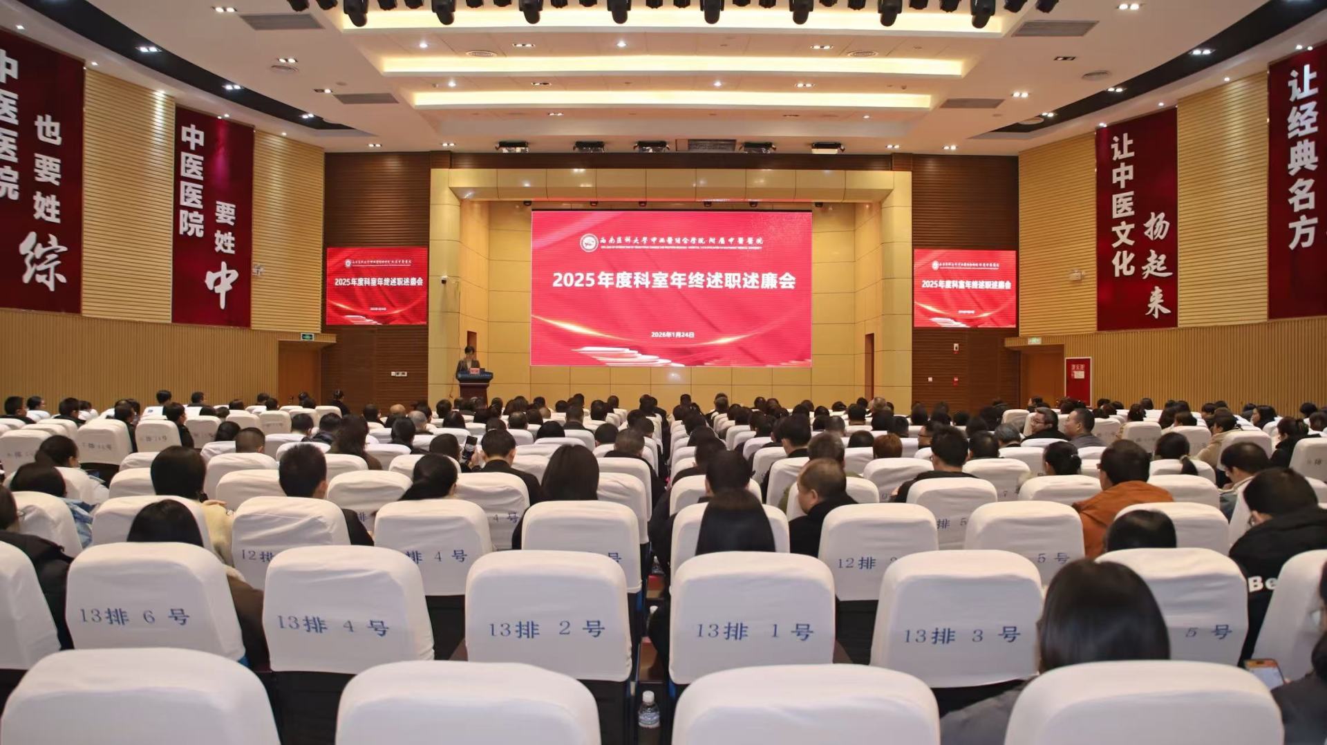 会上,53个临床、医技、辅检科室负责人从党风廉政及意识形态、科室运营情况、医疗质量和安全、教学工作、科学研究、人才队伍建设、医疗行业作风建设、科室“十四五”重点工作完成情况及“十五五”发展规划等方面作了汇报。