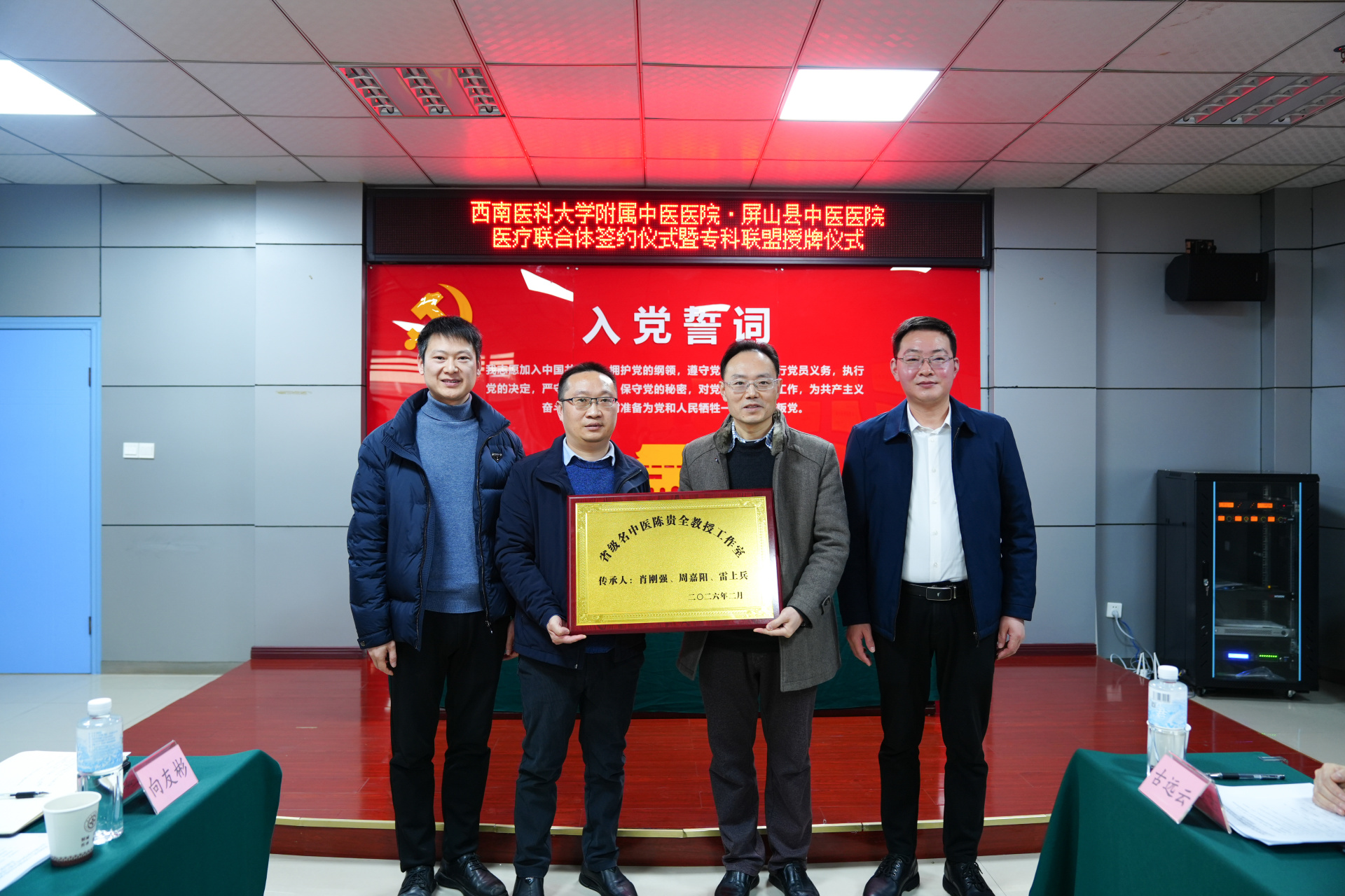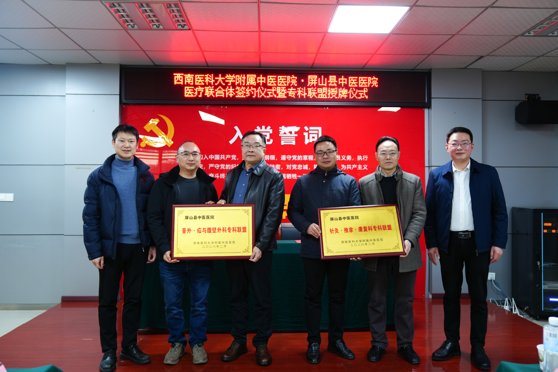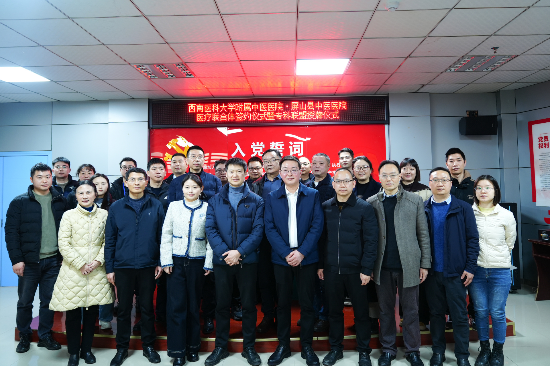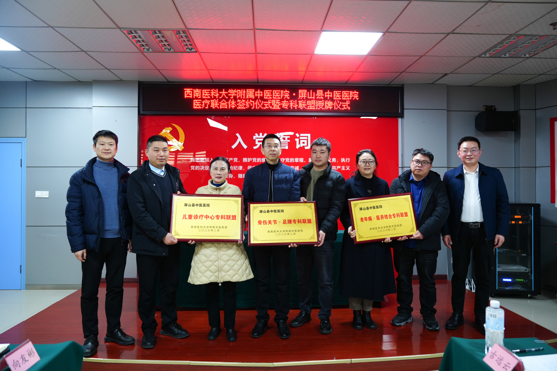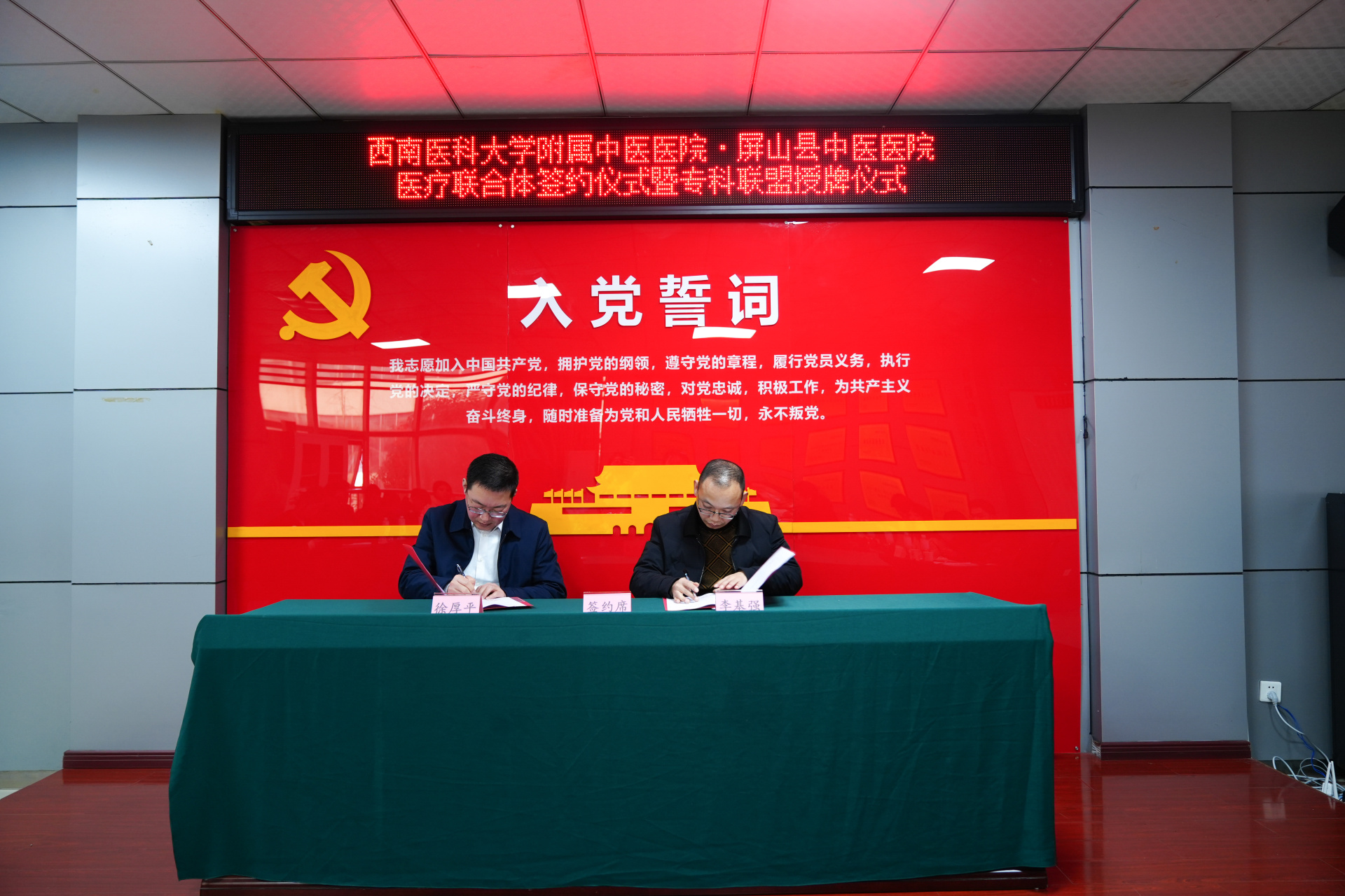 1月6日,我院与屏山县中医医院举行医联体签约授牌仪式,我院副院长徐厚平,屏山县中医医院党总支书记姜伟、院长李基强等班子成员及职能部门负责人等参加了仪式。