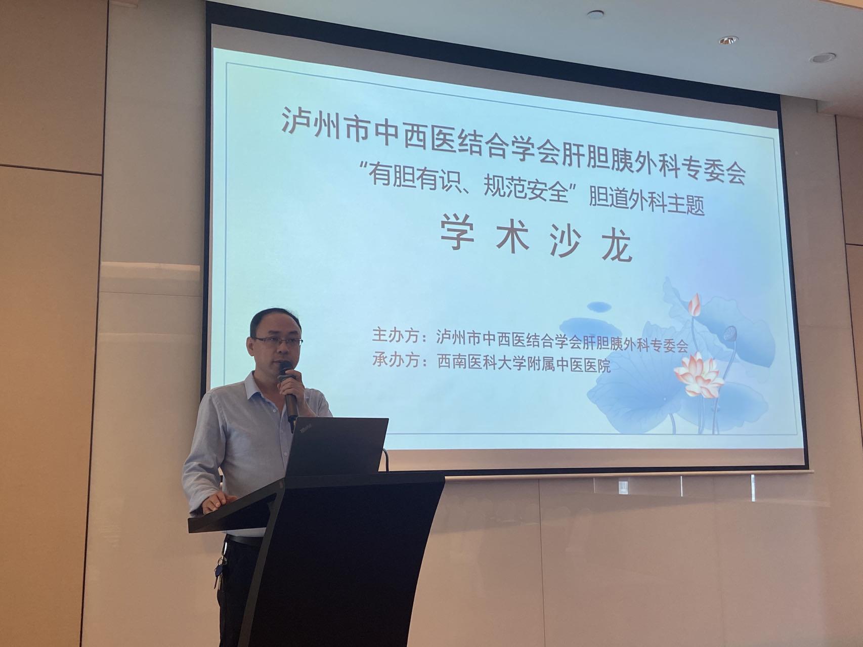 2023年5月20日,由我院肝胆胰外科主办的泸州市中西医结合学会肝胆胰外科专委会“有胆有识、规范安全”胆道外科主题学术沙龙研讨会在泸州顺利召开,我院党委书记李志及来自市内外50余位专家参加了会议。会议由专委会主任委员、我院肝胆胰外科主任陆昌友教授主持。