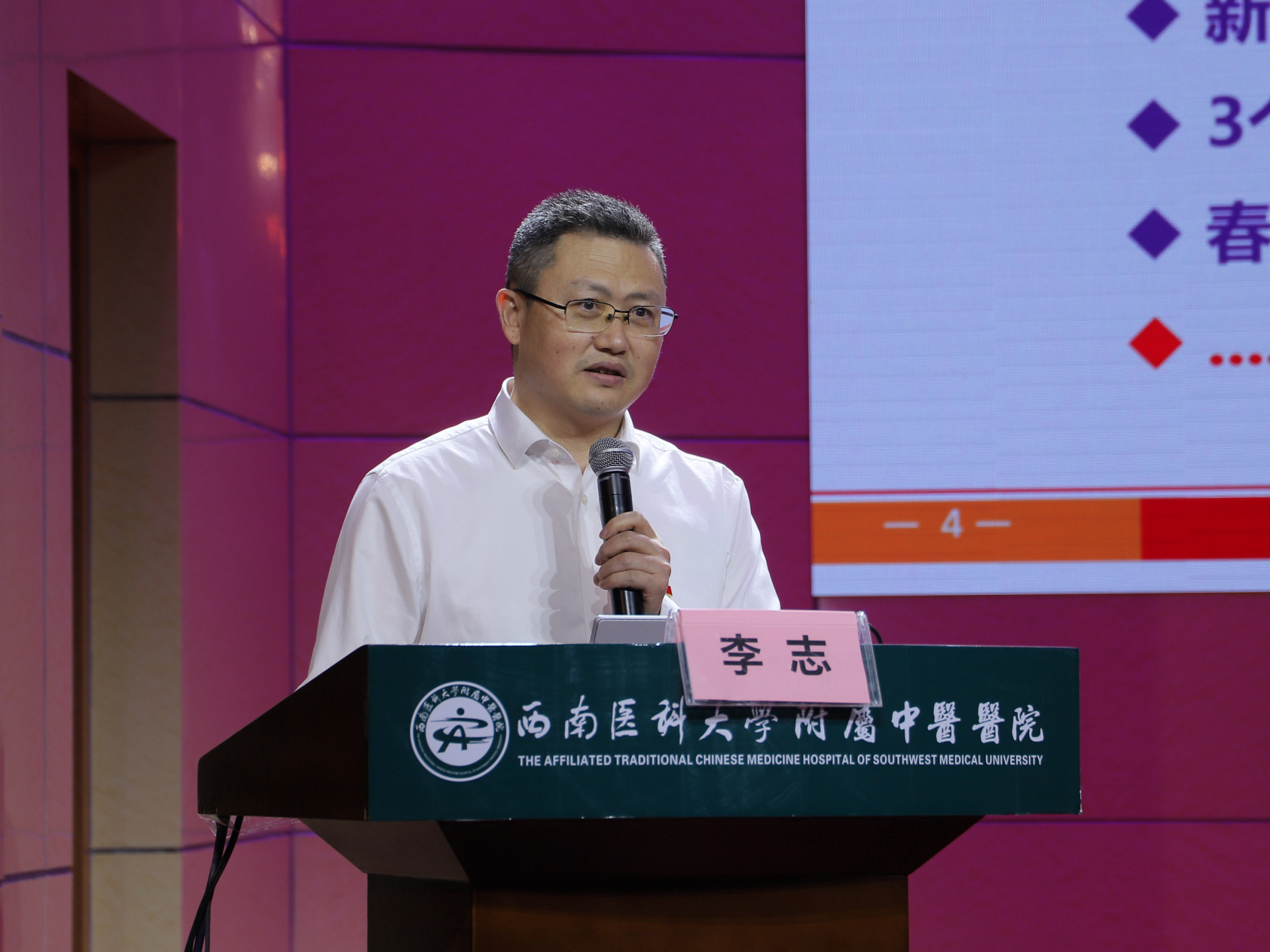 刘建致辞,他首先肯定了护理团队在过去一年中取得的成绩,尤其在抗击新冠疫情过程中,出色地完成了全国各地疫情支援任务,展现了护理团队特别能吃苦、特别能奉献、特别能战斗的风采。随后他结合医院高质量发展新阶段,以“对标竞进 创新发展”为主题,要求护理队伍坚守初心使命为先,让南丁格尔精神扬起来;坚持主动学习为要,让优质护理服务强起来;坚持创新发展为题,让中医护理特色技术用起来,更好地服务广大人民群众。