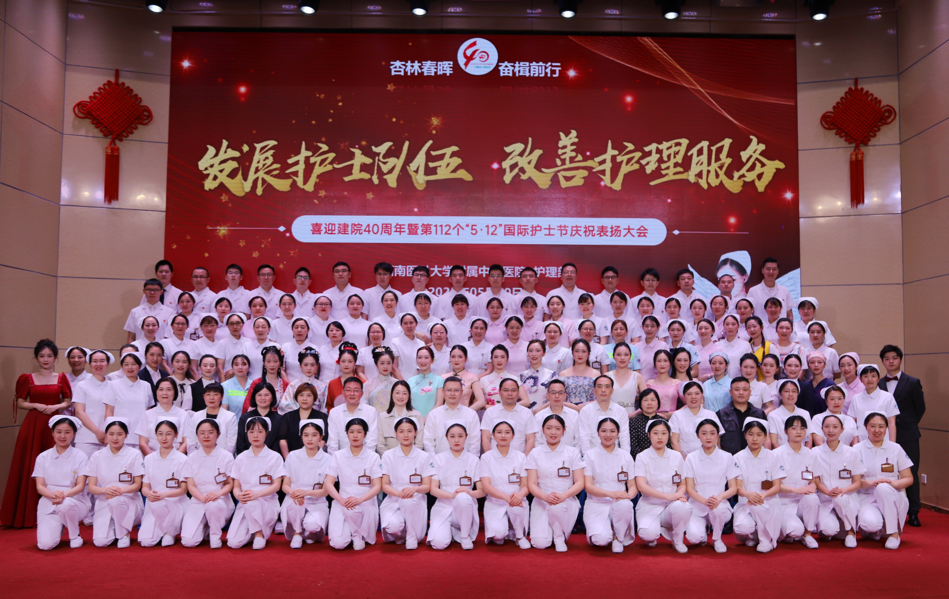 2023年5月10日,我院举行了以“发展护士队伍 改善护理服务”为主题的“5·12”国际护士节庆祝暨表扬大会,党委书记李志、院长刘建等党政领导,相关职能部门负责人及护士代表参加了会议。
