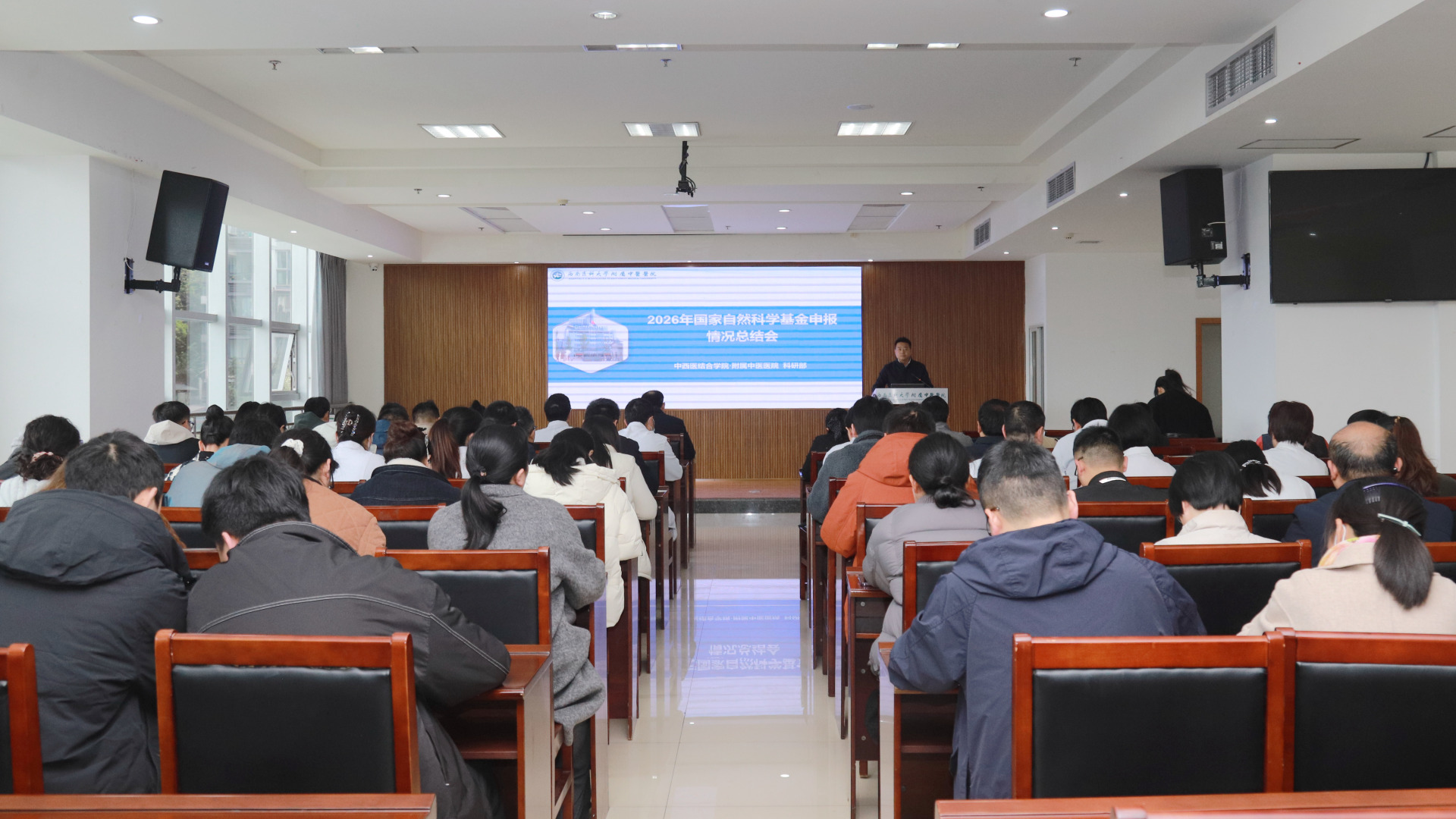 汪国友总结讲话。他强调,全院科技工作者要增强紧迫感和责任感,持续发力、久久为功。一是要统一思想、坚定信心,充分发挥科室团队的协作力量;二是要以国家自然科学基金申报为契机,加强核心科研团队建设;三是要细化举措,精准摸底动员,系统辅导培训,做好服务保障;四是要充分发挥平台支撑作用,提升科研组织效能;五是要加强与国内一流团队的深度协作,推动高水平科研合作,以高质量科研助力医院早日建成“国内一流、国际知名的中医、中西医结合现代化研究型医院”,为学校全面建成“特色鲜明的西部高水平医科大学”作出新的更大贡献。