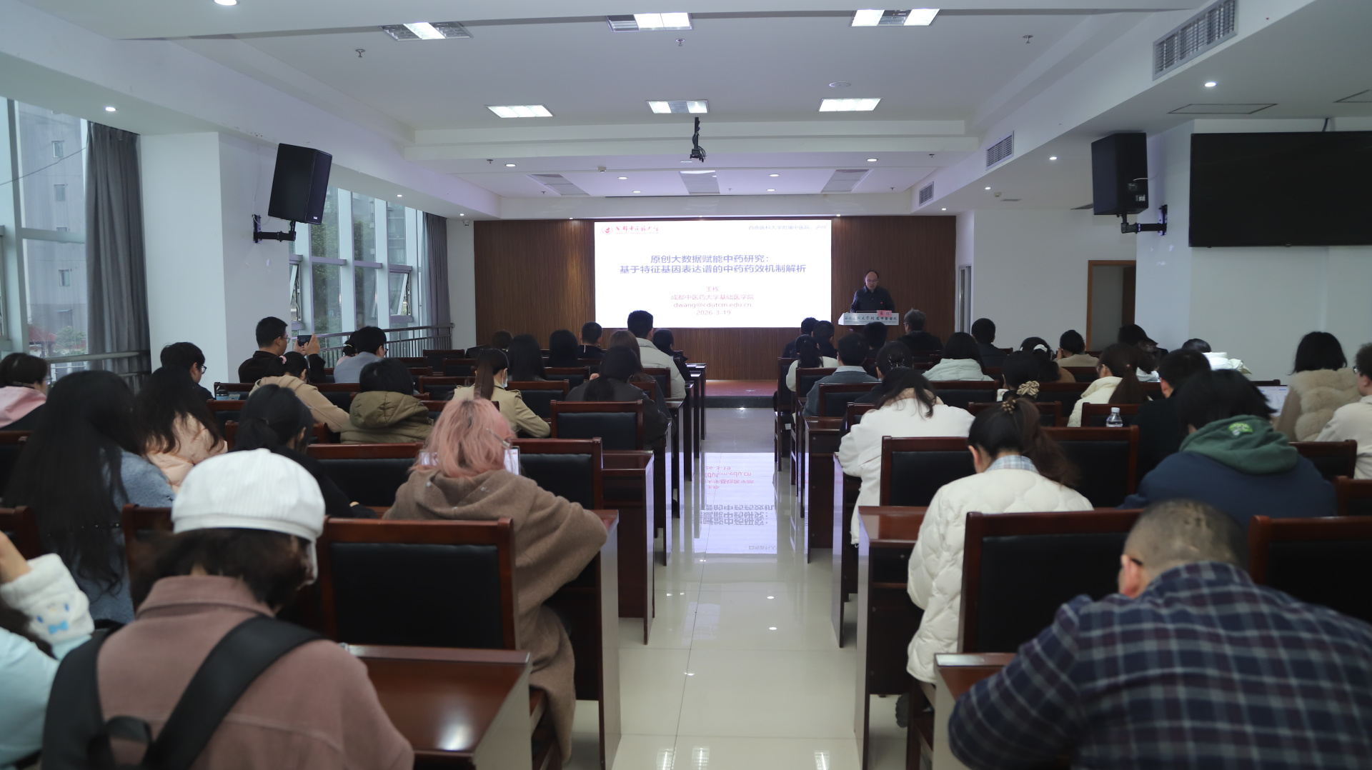 随后,王栋教授以《原创大数据赋能中药研究:基于特征基因表达谱的中药药效机制解析》为题作了科研专题讲座。讲座结束后,王栋教授与与会人员进行了深入的座谈交流。