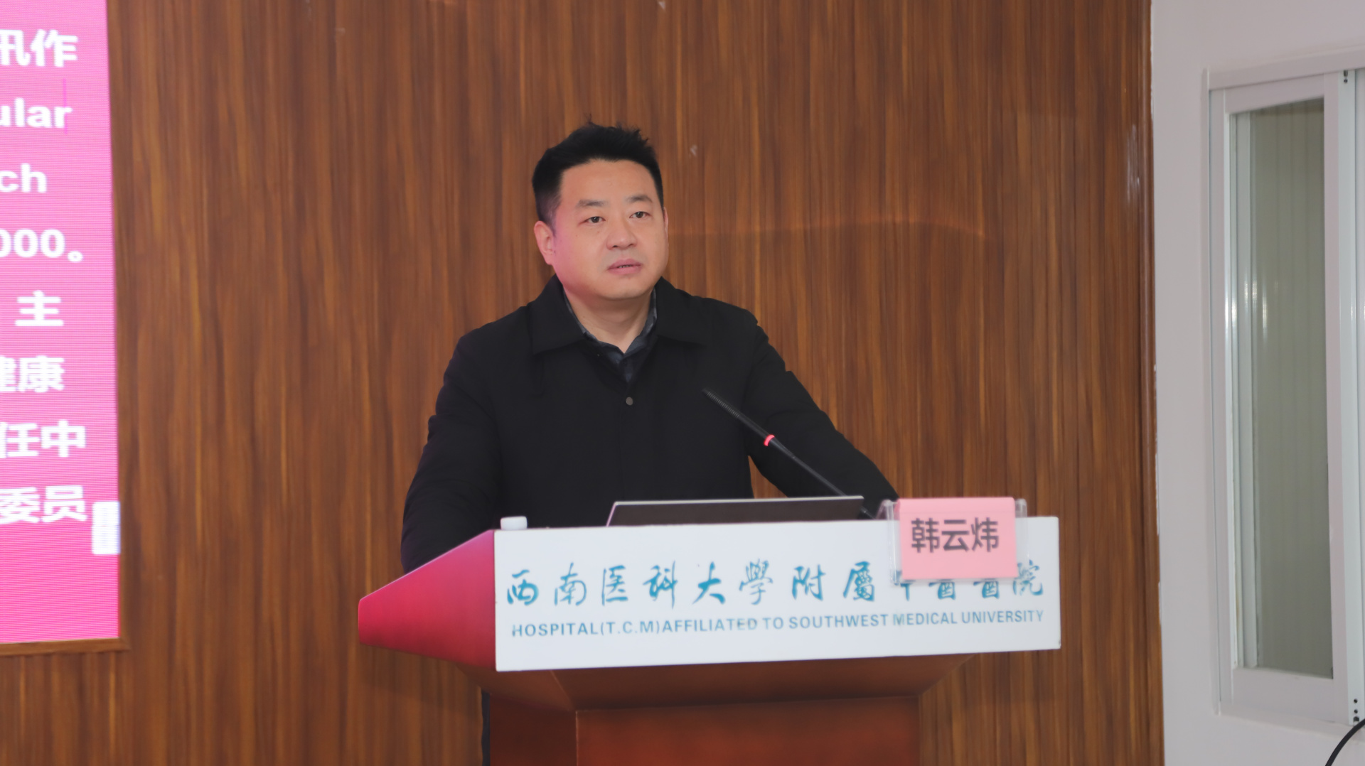 韩云炜致辞。他指出,王栋教授在中医药研究领域成果卓著,造诣深厚,希望与会人员以学促行,以行践学,助力医院科研能力提升与高质量发展。