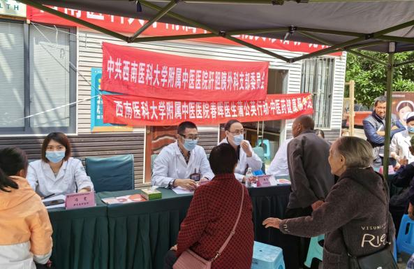 4月25日,肝胆胰外科党支部联合骨伤科手外·儿骨·烧伤整形组党支部、针灸·推拿·康复科党支部、脾胃·风湿免疫病科党支部,前往泸州市合江县尧坝镇卫生院开展了对口交流活动,为尧坝镇卫生院住院患者进行了查房、查体,并在当地开展了义诊及中医特色技术体验活动。