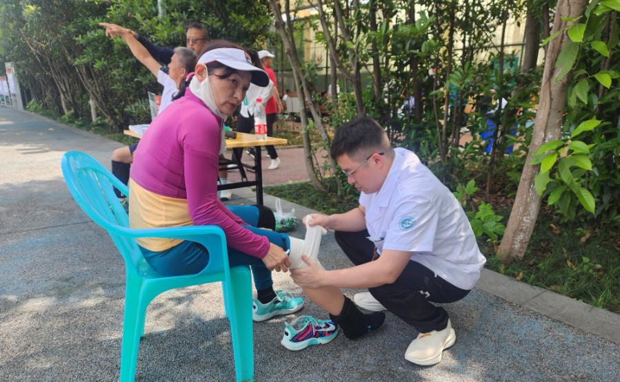 我院作为此次赛事的医疗保障单位,在开幕式和活动现场设置了临时医疗点,从急诊科和骨伤科创伤•正骨组选派了经验丰富的医务人员、运动康复专家为参赛人员提供现场医疗救治服务,负责现场突发疾病救治和急救转运。