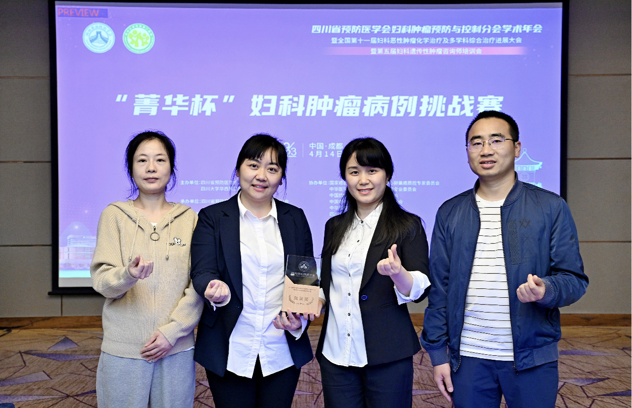 2023年4月14日,由四川省预防医学会举办的“箐华杯”妇科肿瘤病例挑战赛在成都举行,全省共六家医院参赛。我院肿瘤·血液病科(忠山病区)张燕、陈兰参加了比赛,陈兰获“风采奖”。