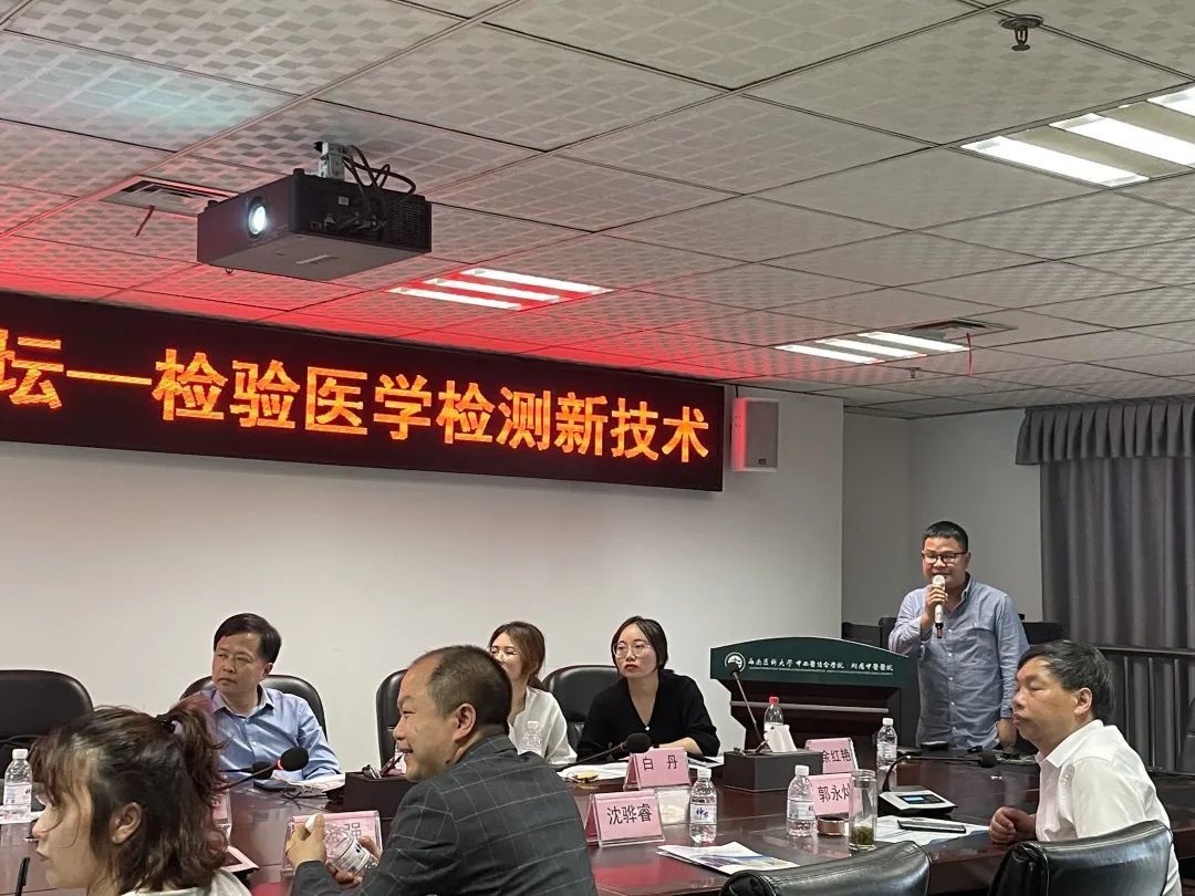 2023年4月15日,重庆医科大学谢国明教授团队一行9人受邀来院开展专题讲座。会议由检验科主任兼输血科主任郭永灿主持。会议通过线上线下的方式举行,我院检验科医务人员、实验室工作人员及相关人员共200余人参会。