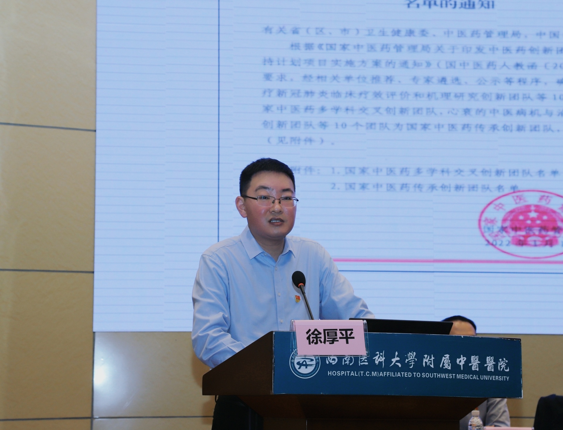 刘建讲话,他强调全院职工要充分认识学科科研重要性,充分发挥科研人才的带动引领作用,坚持问题导向、对标竞进、抓住关键、突破瓶颈,深入挖掘临床科研及教学潜力,着力打造特色鲜明的学科品牌,为医院科教事业打开新局面,奋力按下医院高质量发展的快进键,跑出医院内涵式发展的加速度,为建设“国内一流、国际知名的中医、中西医结合现代化研究型医院”而努力奋斗。