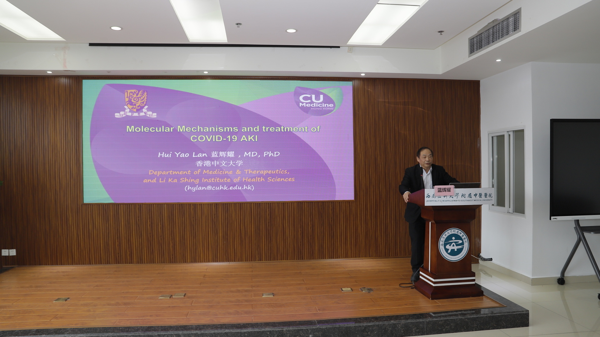 会上,蓝辉耀教授以《新冠急性肾损伤的分子机制与治疗探讨》为专题作了科研专题讲座,并解答了参会人员的提问,受到了与会人员的欢迎。