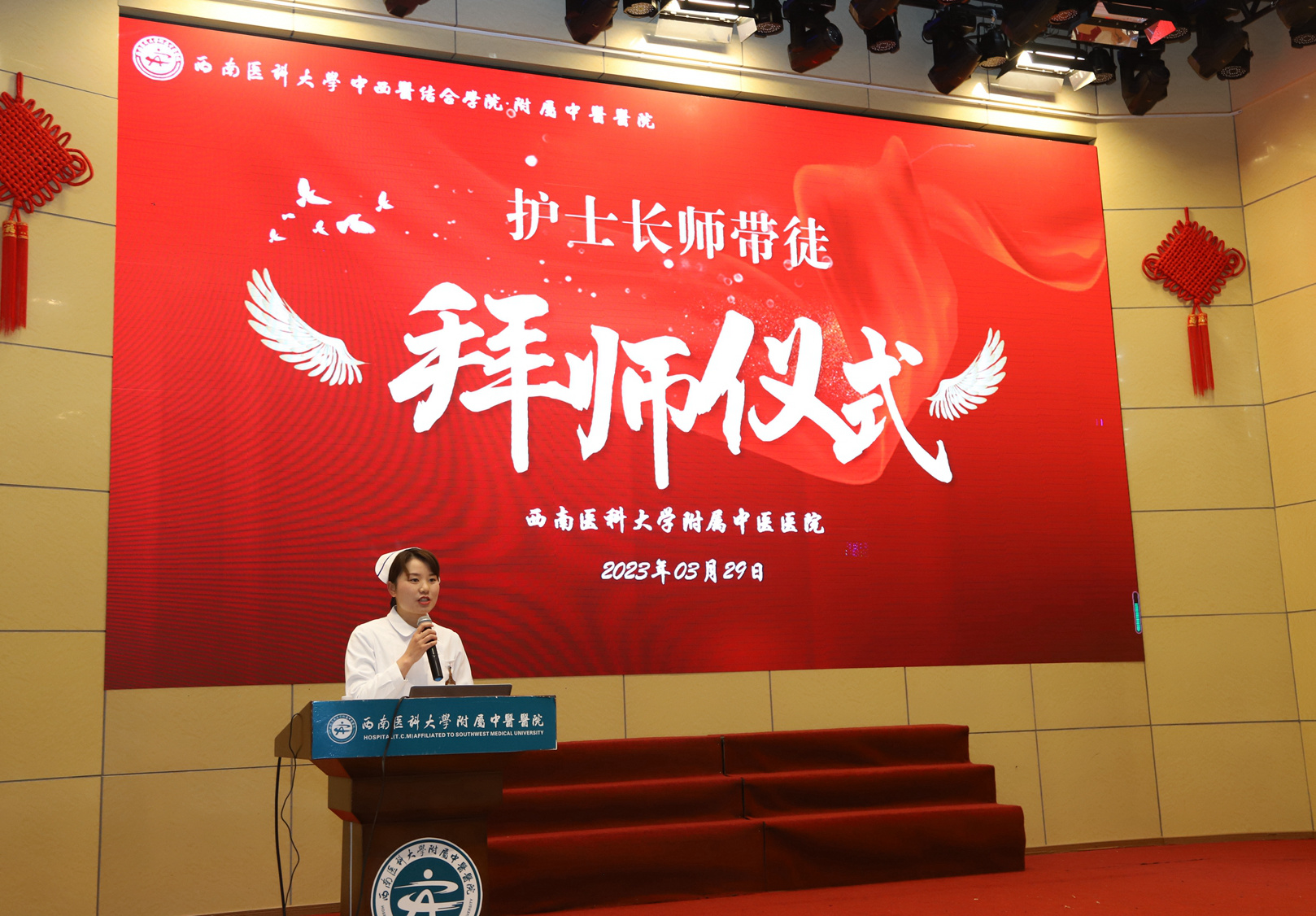 随后,举行了2023年护士长“师带徒”拜师仪式,导师代表李润、徒弟代表刘露分别进行了表态发言。