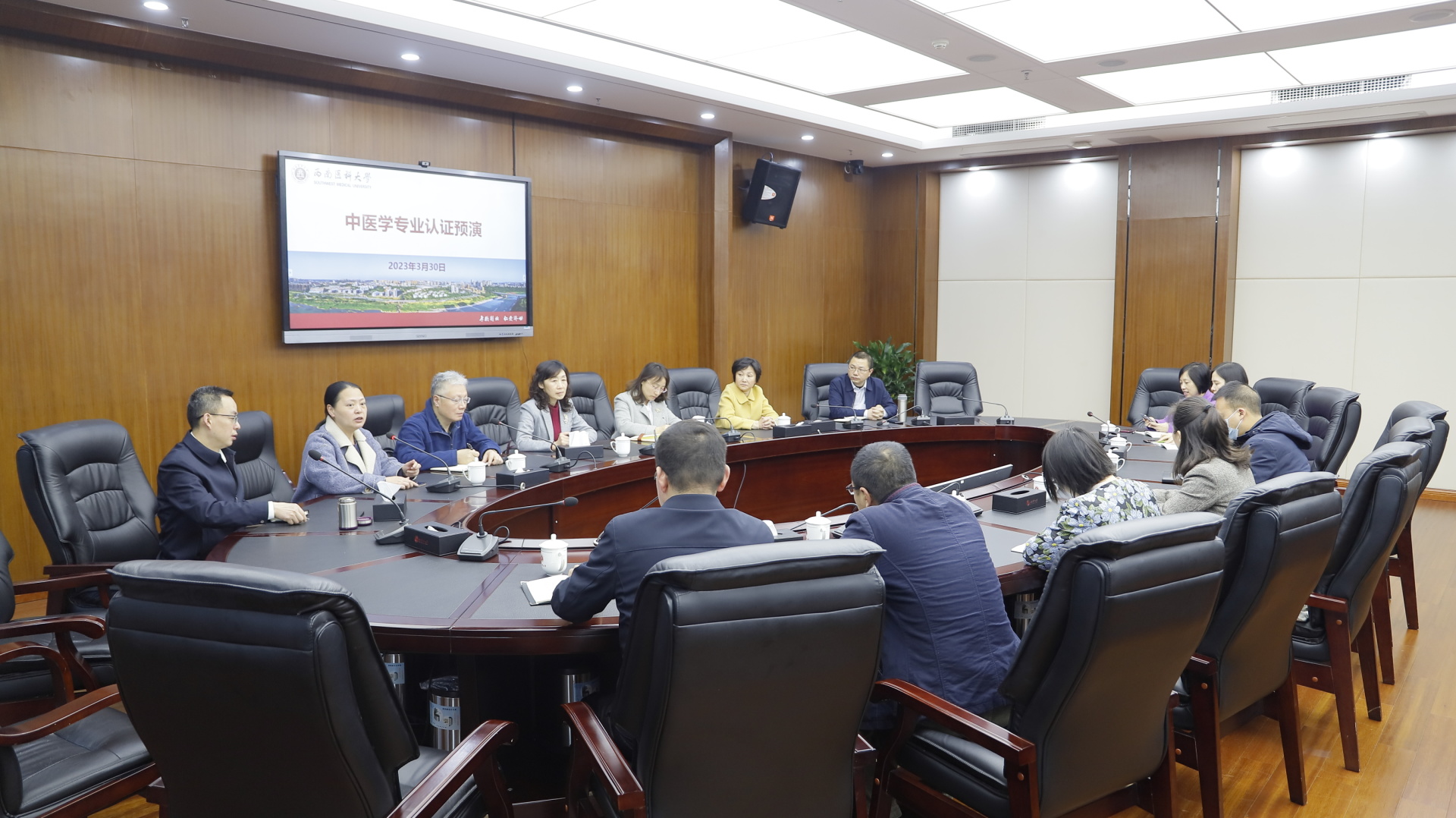 2023年3月30日,由学校党委常委、副校长何涛带队,教务处处长郑小莉、教师发展与教育评价中心主任赵琼、学校专职教学督导员刘克林、我院专职组织员王琳、老专家王明杰、党委副书记雷学举、副院长徐厚平、学生党总支书记谢晓东等组成的专家组对我院中医学专业认证工作进行了督查指导。