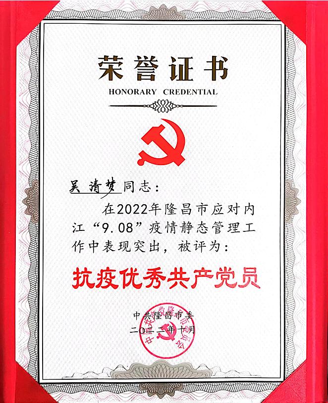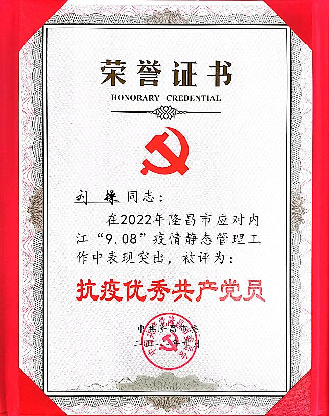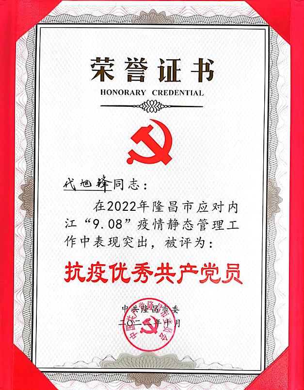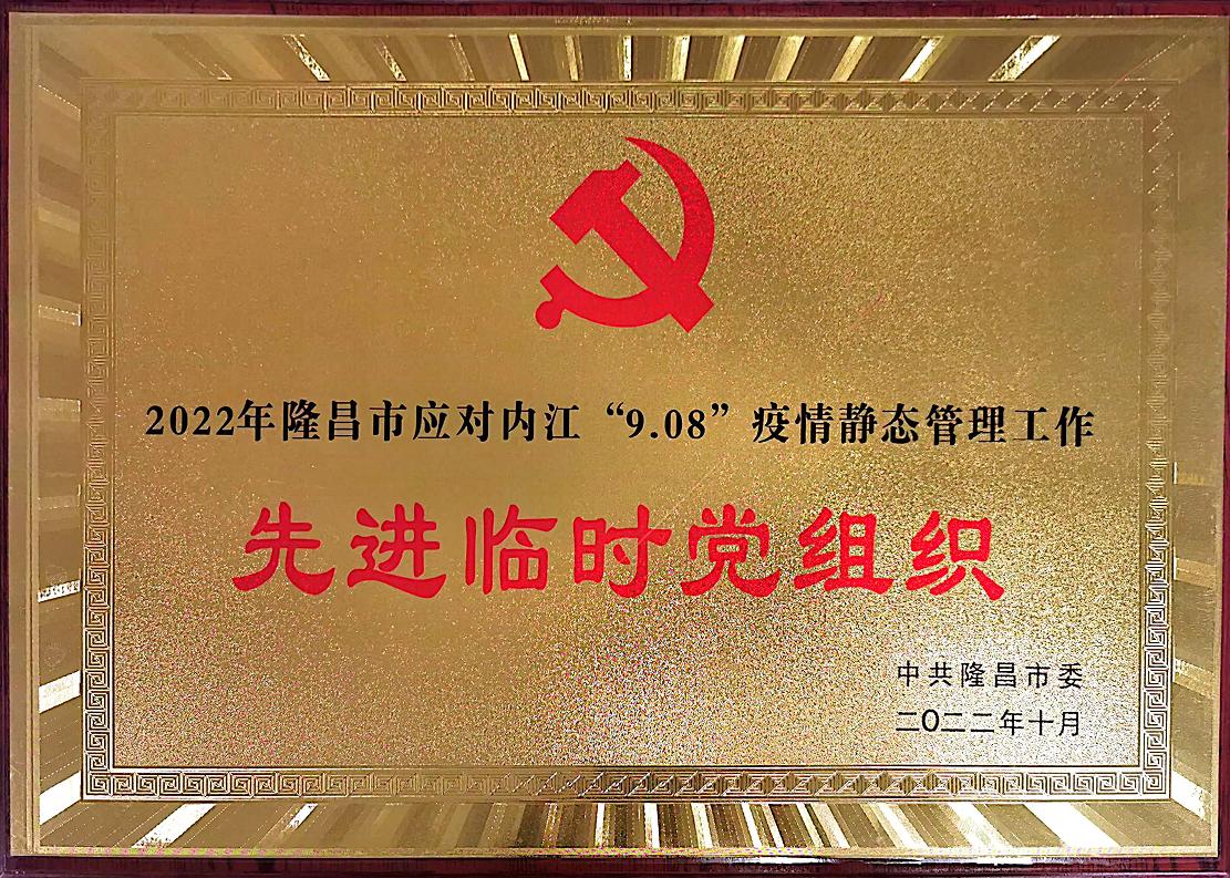 我院接管隆昌市亚定点医院临时党委荣获“2022年隆昌市应对内江“9.08”疫情静态管理工作先进临时党组织”荣誉称号,援内江抗疫医疗队队员代旭锋、吴清梦、刘操、罗英荣获抗疫优秀共产党员荣誉称号。