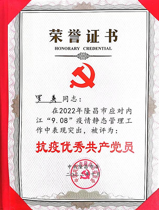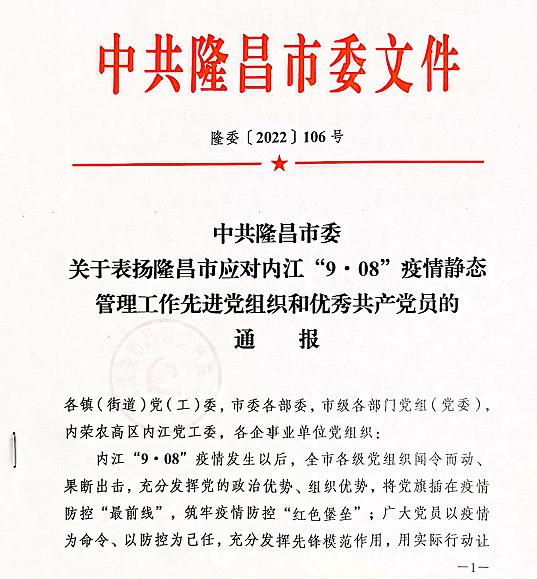 近日,中共隆昌市委发布《关于表扬隆昌市应对内江“9·08”疫情静态管理工作先进党组织和优秀共产党员的通报》文件。