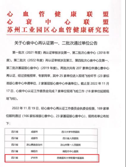2022年11月19日,经心衰中心再认证工作委员会执委会投票,我院顺利通过心衰中心再认证。