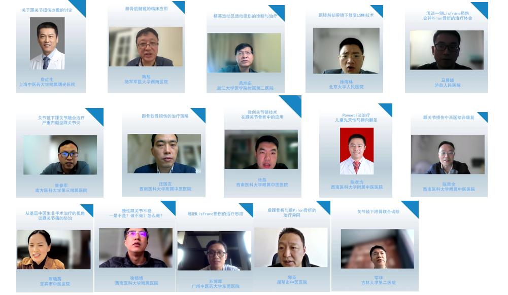 开幕式后,来自德国、韩国、北京、大连、成都、重庆等国内外50余位专家围绕“髋、膝、踝、肩”关节损伤及治疗经验作了专题讲座。此次会议采用线上方式进行,在线观看人数达5.9万人。