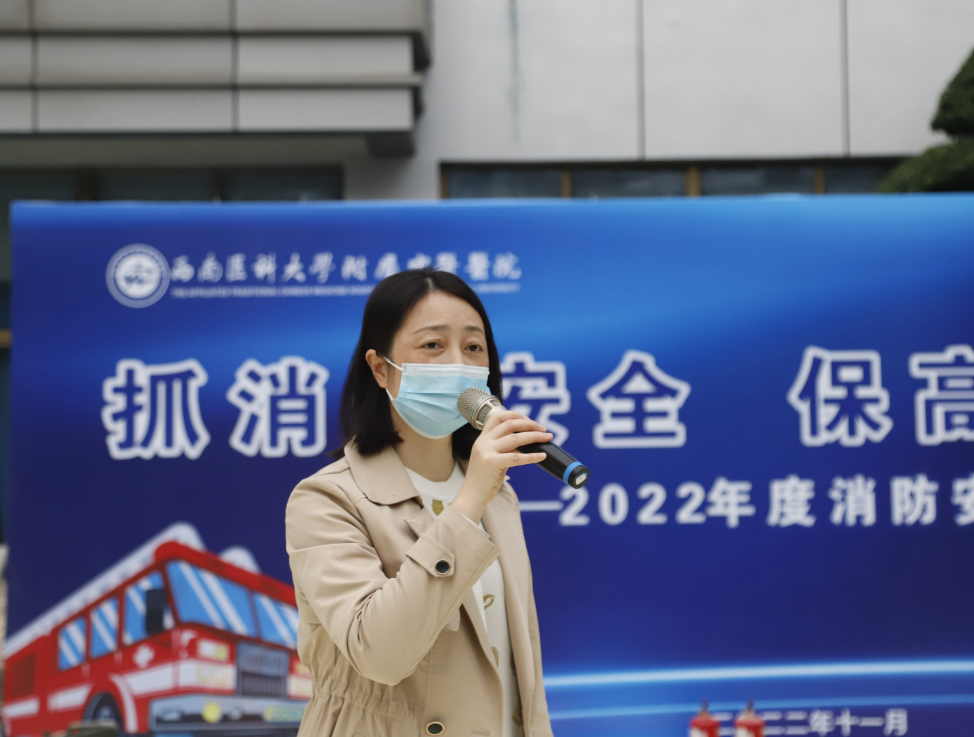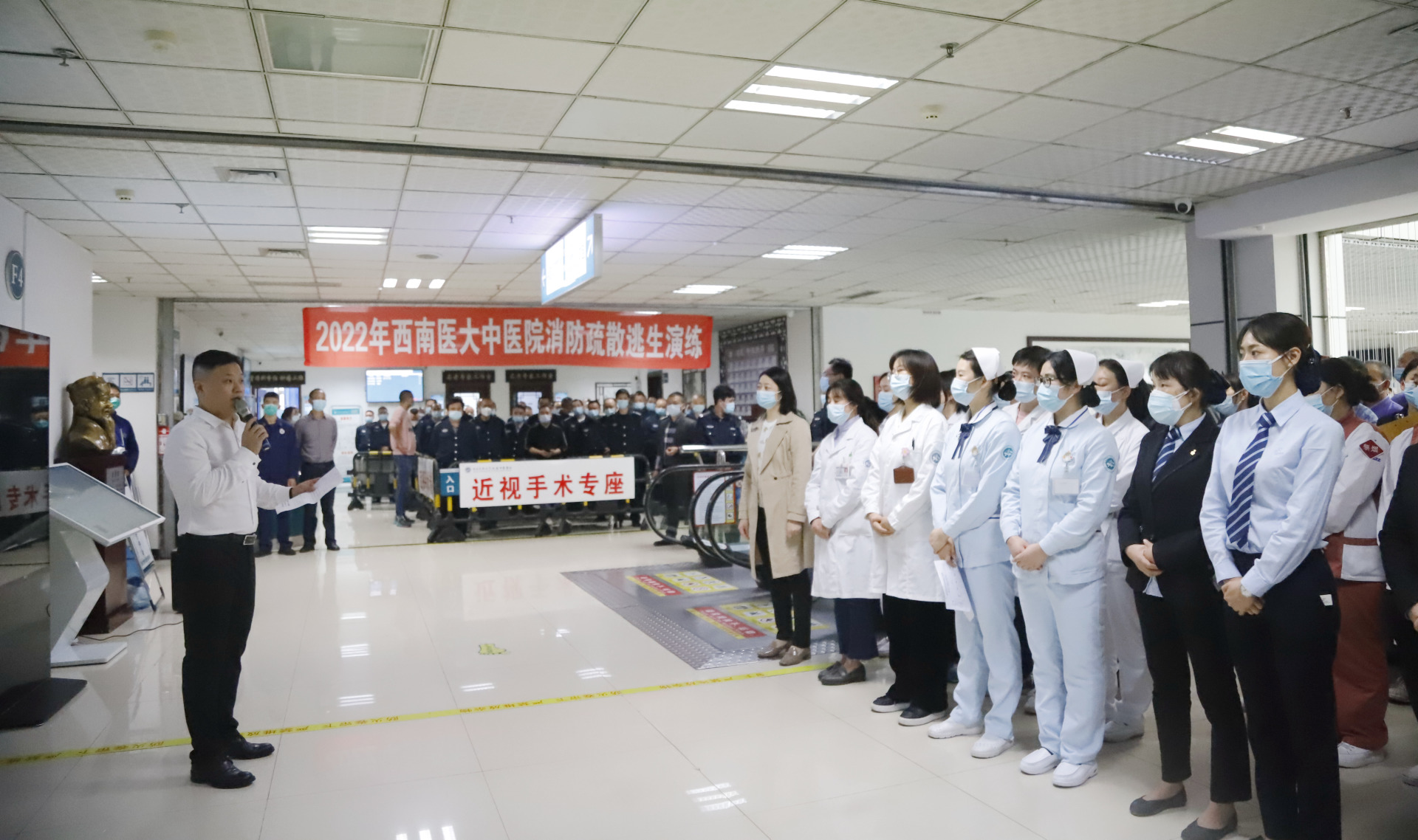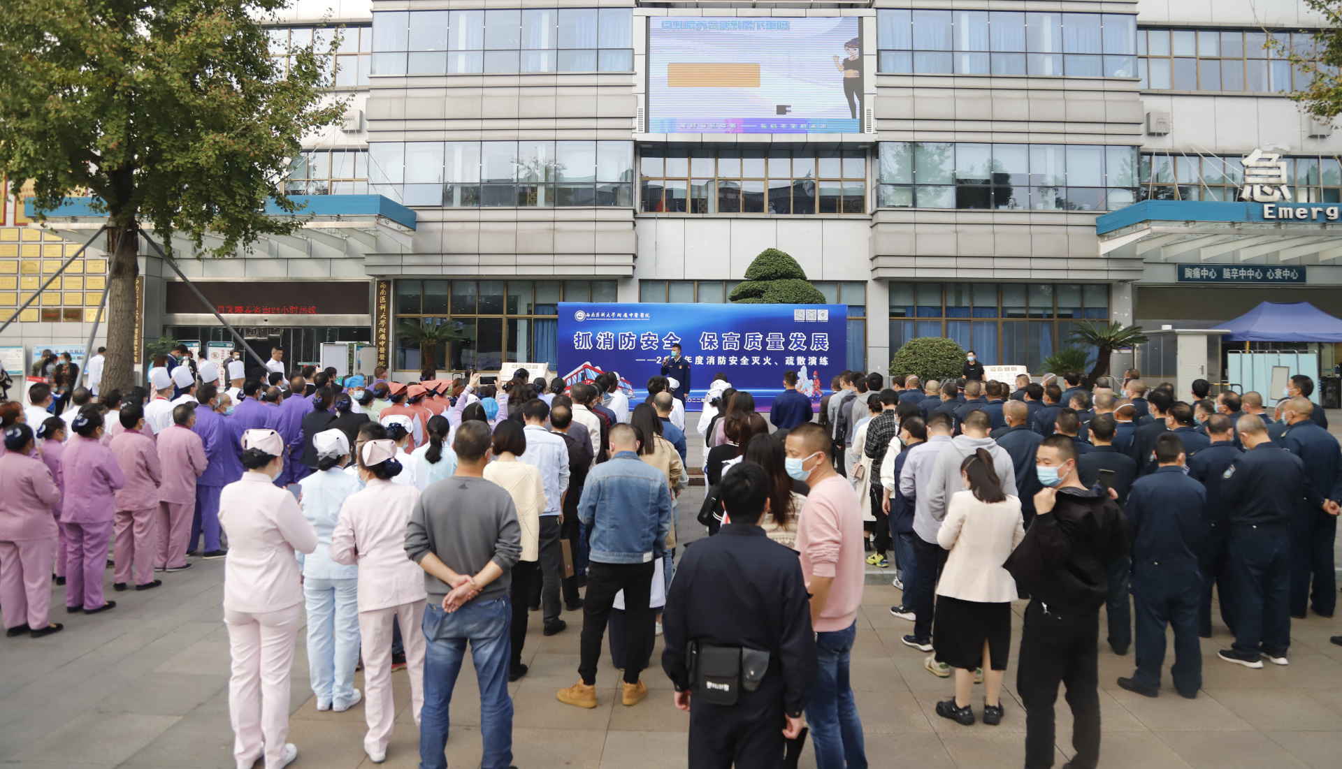 2022年11月8日,我院在城北院区开展了2022年度消防安全知识培训和灭火逃生演练,医院党委副书记兼纪委书记徐茜、全院义务消防员、安全联络员、安保人员、第三方公司主管、重点区域工作人员等共计200余人参加了培训演练。此次培训演练由保卫部部长张玉刚主持。
