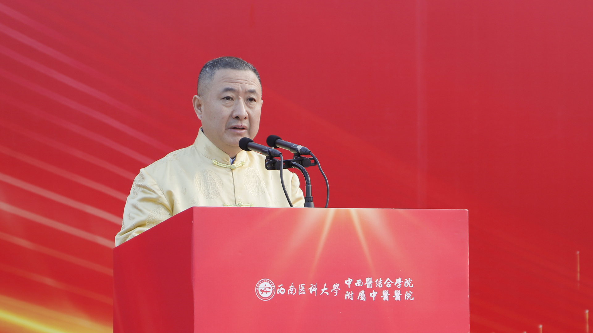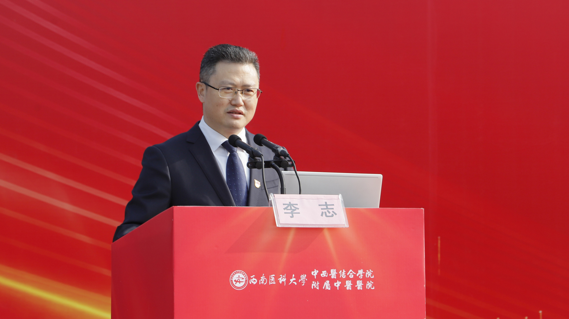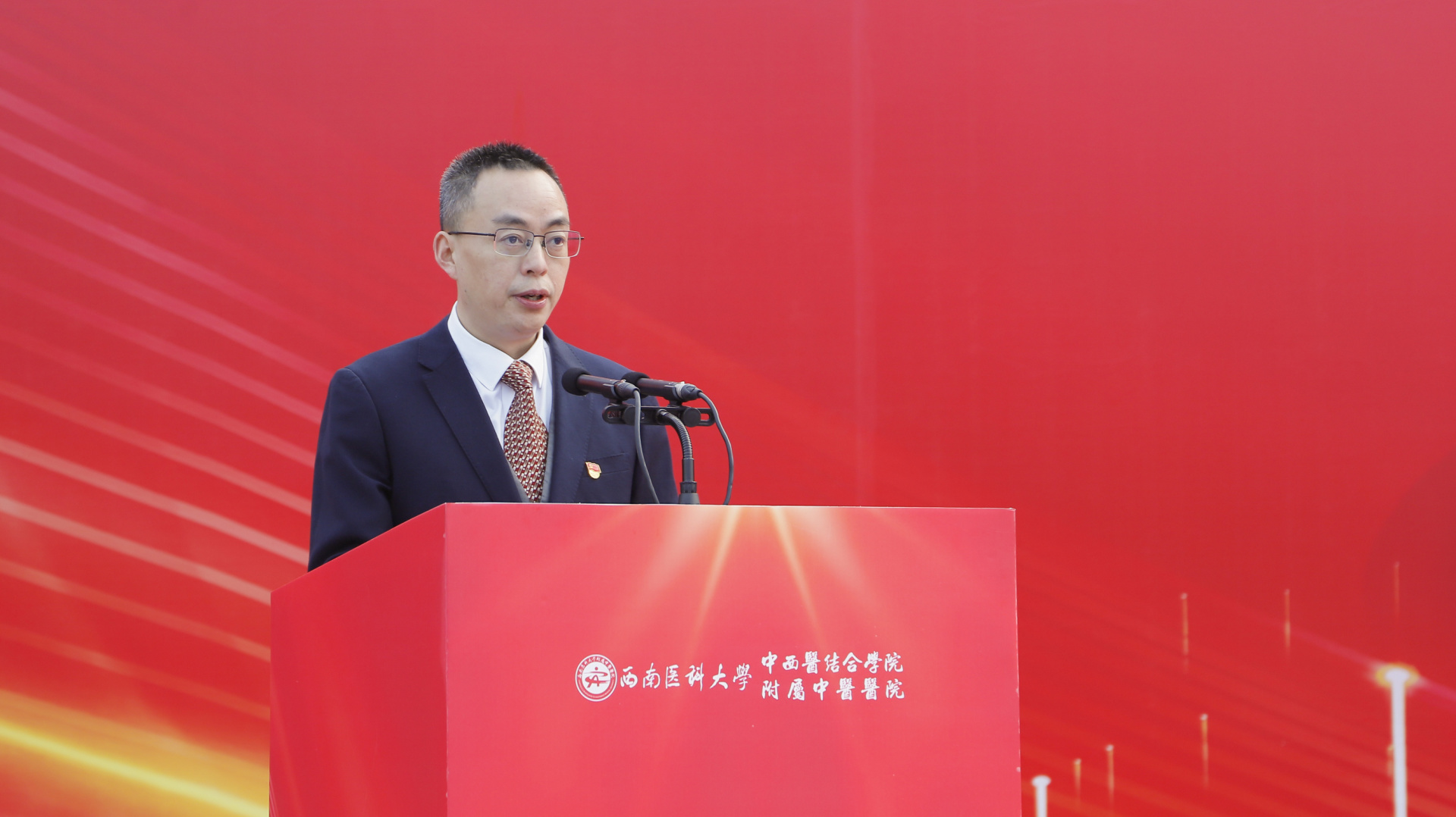 游洪涛讲话,他回顾了在西南医科大学的学习时光,希望学弟学妹们在未来的五年里,要珍惜时间和机会,认真学习中医文化,早日成为国家栋梁,为实现第二个百年奋斗目标、实现中华民族伟大复兴的中国梦努力奋斗。