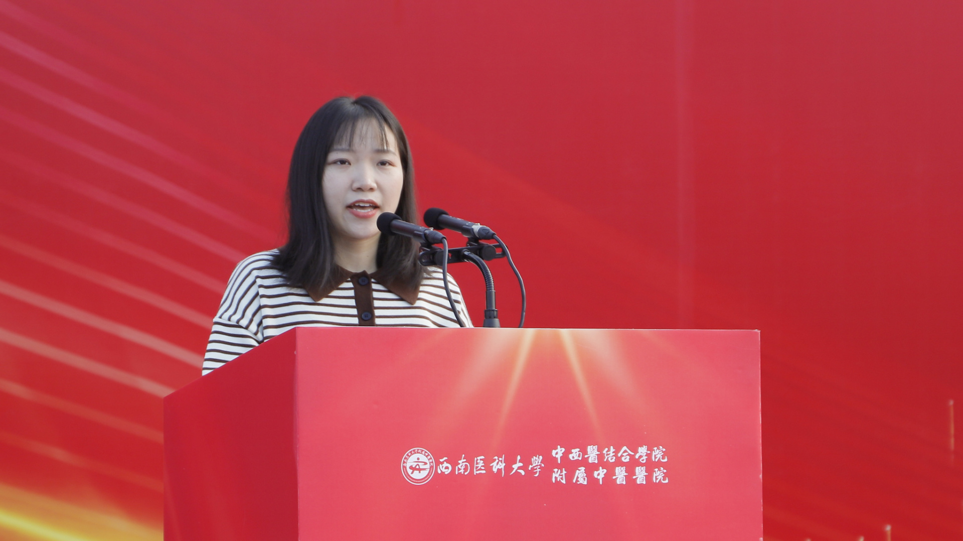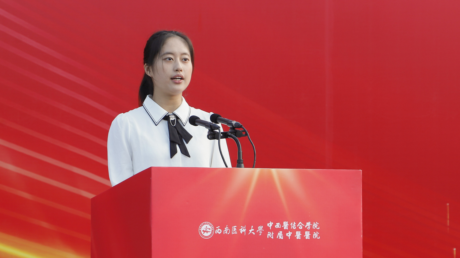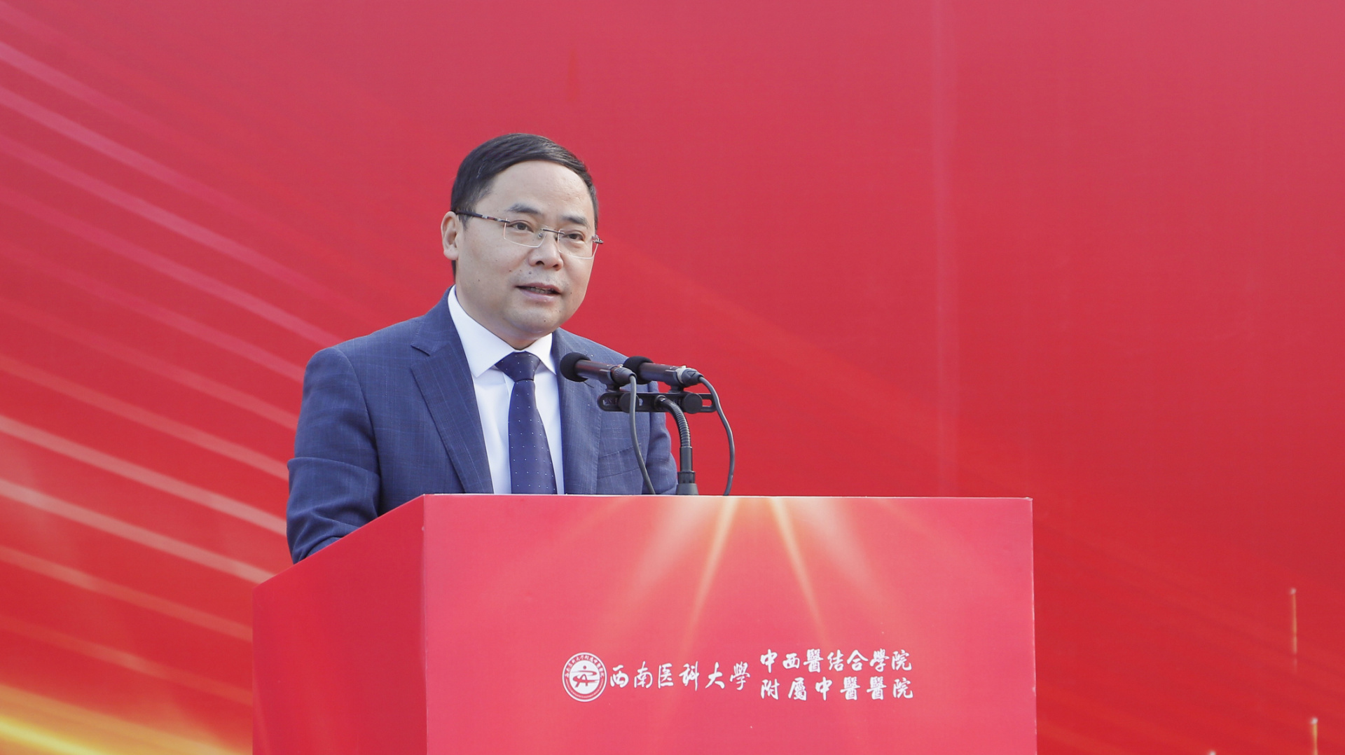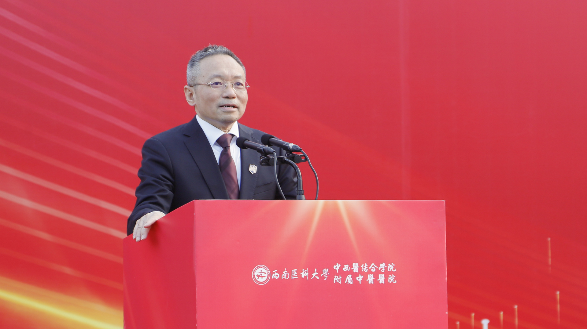 游洪涛讲话,他回顾了在西南医科大学的学习时光,希望学弟学妹们在未来的五年里,要珍惜时间和机会,认真学习中医文化,早日成为国家栋梁,为实现第二个百年奋斗目标、实现中华民族伟大复兴的中国梦努力奋斗。