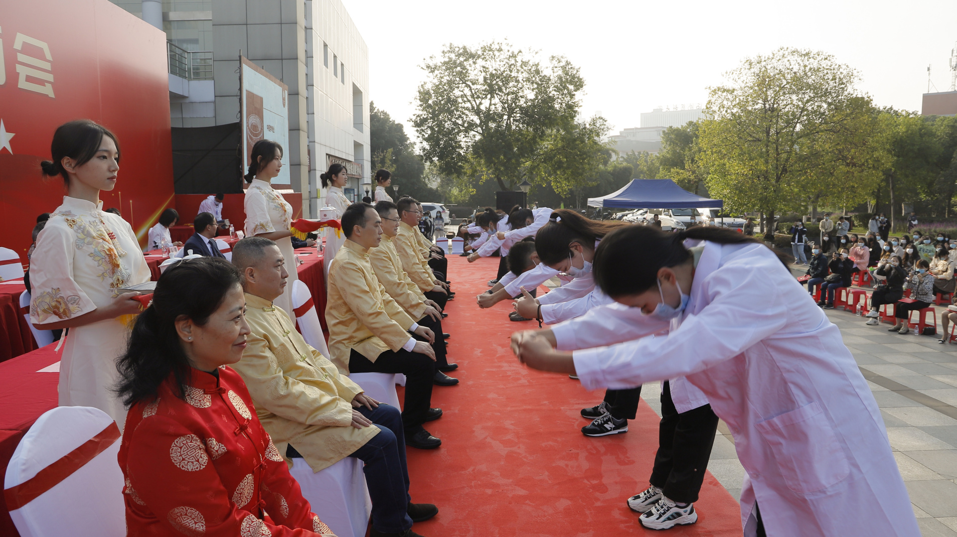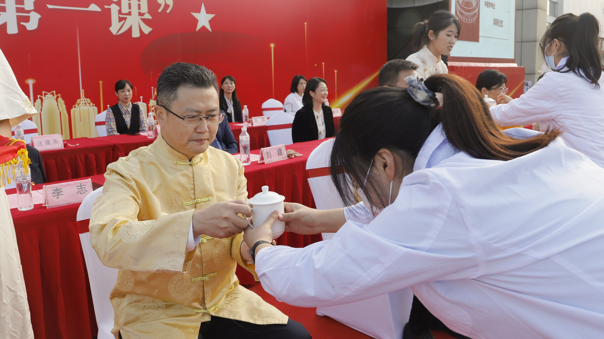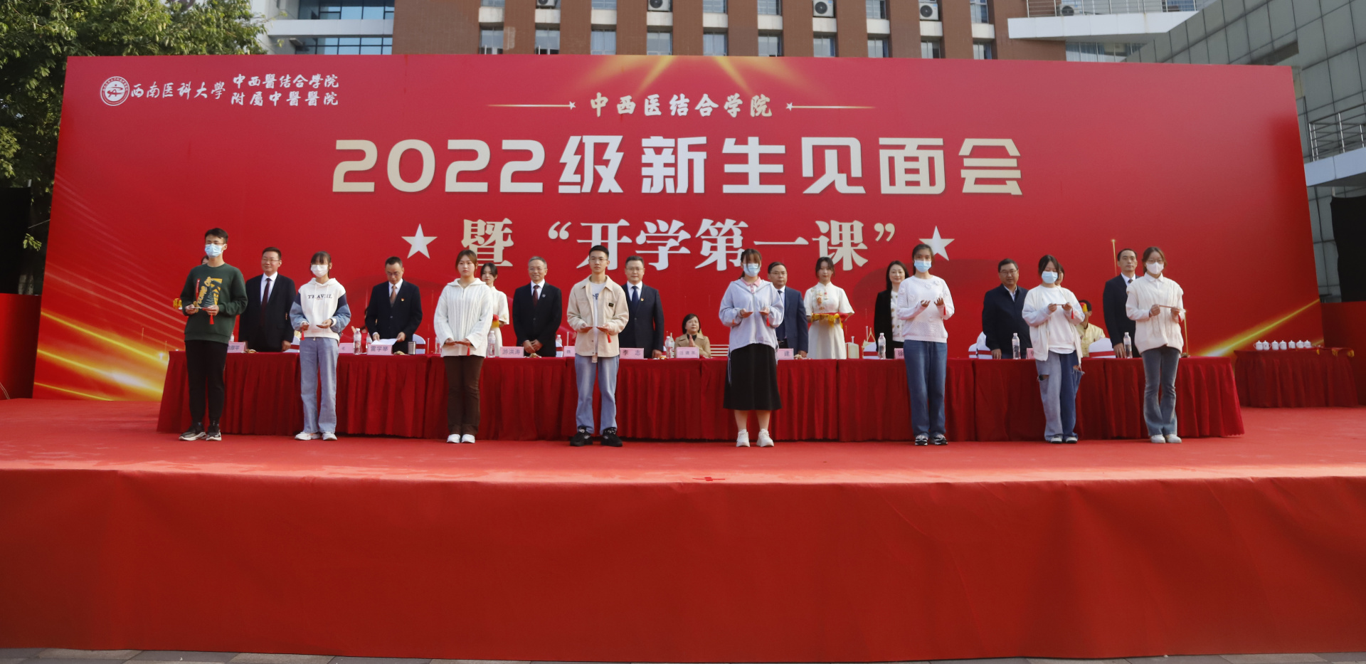 随后,李志带领全体新生诵读了《大医精诚》,与会领导为学生代表发放了入学纪念品。