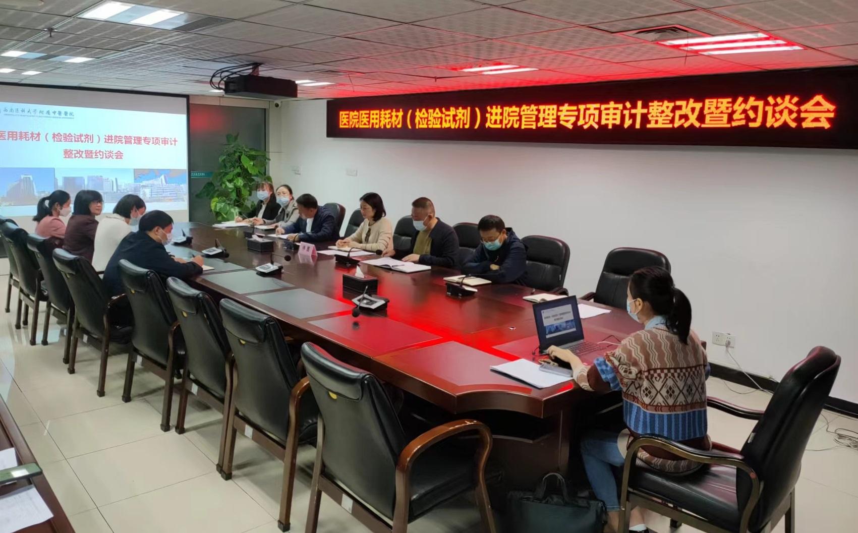 2022年10月26日,我院召开医用耗材(检验试剂)进院管理专项审计整改暨约谈会,医院党委副书记、纪委书记徐茜,纪委办公室·监察室、设备保障部、检验科负责人、经办人员及审计组人员参加了会议。会议由审计部部长黄浩主持。