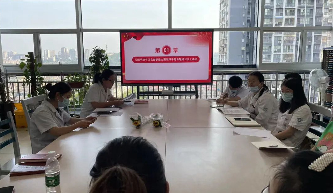 会上,党支部书记王君霞领学了习近平总书记在省级主要领导干部专题研讨会和中央统战工作会议上的讲话精神,分享了中国中医药报《孙同郊:勤耕杏林 传承中医精华》相关内容;科室主任冉志玲领学了公立医院高质量发展相关文件,对科室上半年工作作了总结。