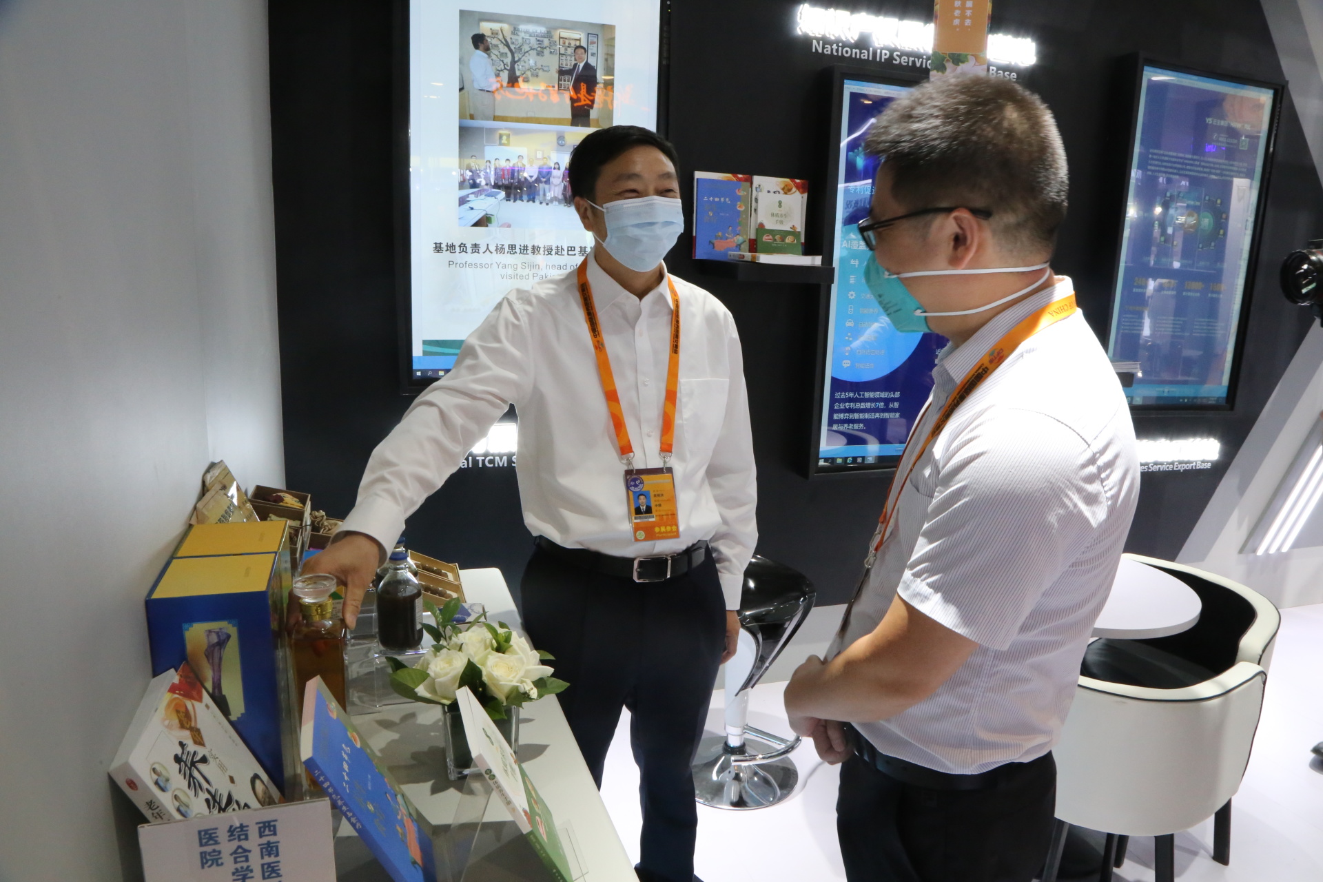 活动中,我院展出的预防和治疗新冠肺炎的“新冠0号”“新冠1号”等特色院内制剂,中药香丸、乾源玉露酒、苏百维尔植物饮料、芳香防疫辟秽香囊等特色健康产品和中医药养生书籍备受欢迎。