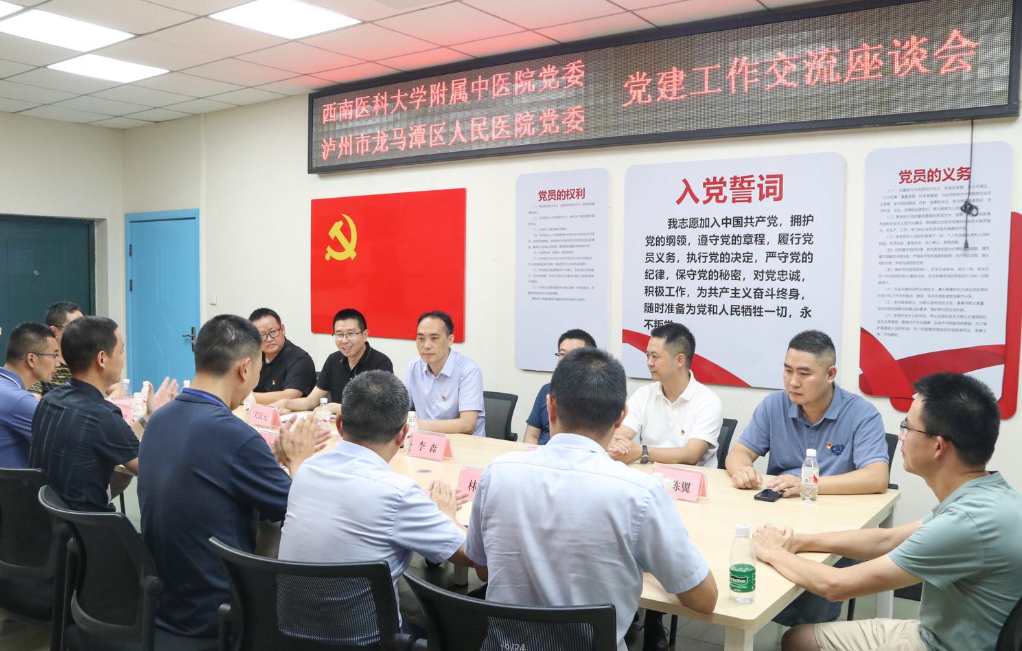 随后,双方开展了党建交流活动。龙马潭区人民医院党委书记严家福介绍了医院的基本概况及党建工作情况,希望我院在今后的工作中进一步加强对龙马潭区人民医院骨科专科建设和学术发展的帮扶指导。