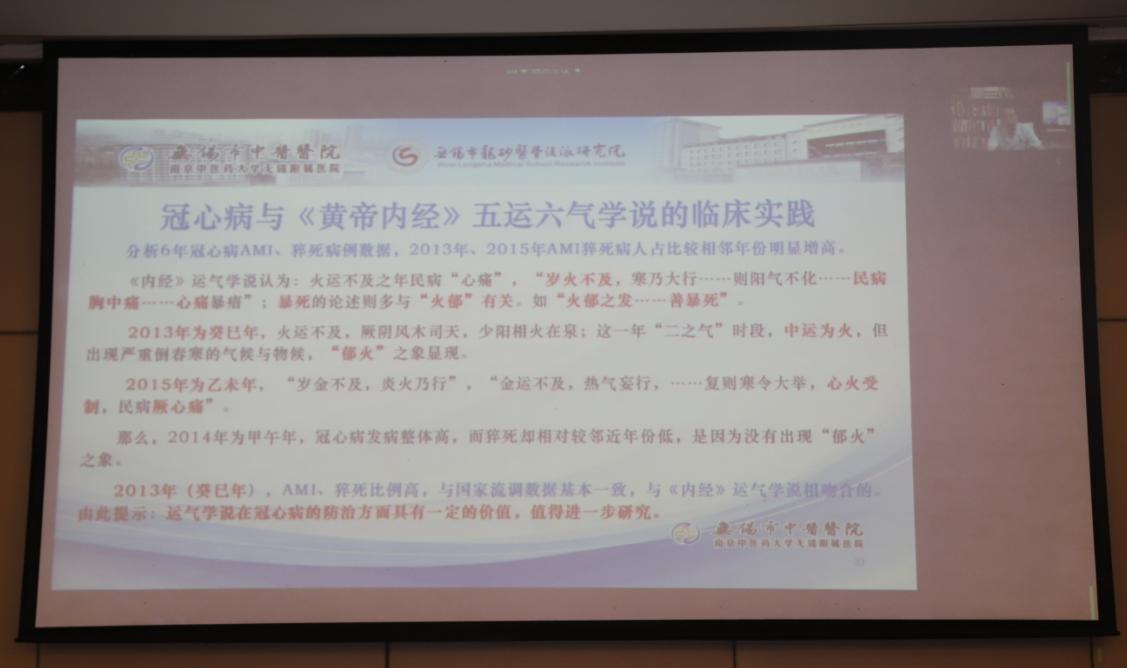 江苏省无锡市中医医院陆曙作《经方及运气方药防治冠心病的临床应用》专题讲座