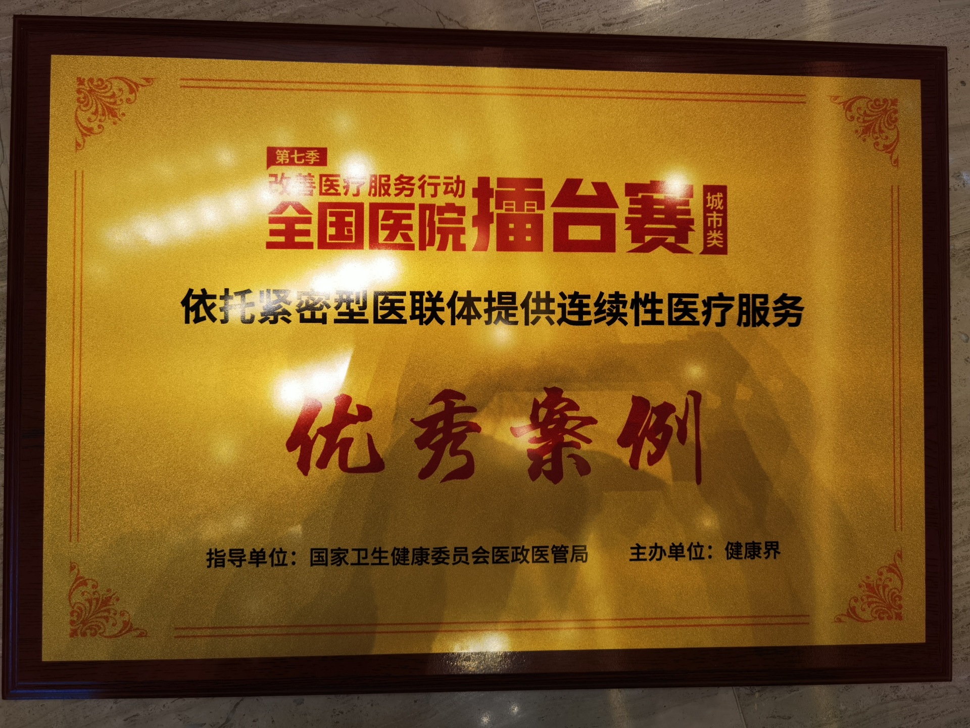 8月12日,由国家卫健委医政医管局指导,健康界传媒和青岛大学附属医院共同主办的改善医疗服务行动全国医院擂台赛总决赛在青岛举行,我院选送的“以专科联盟为抓手,不断提升医疗服务”荣获全国医院擂台赛总决赛优秀案例奖。